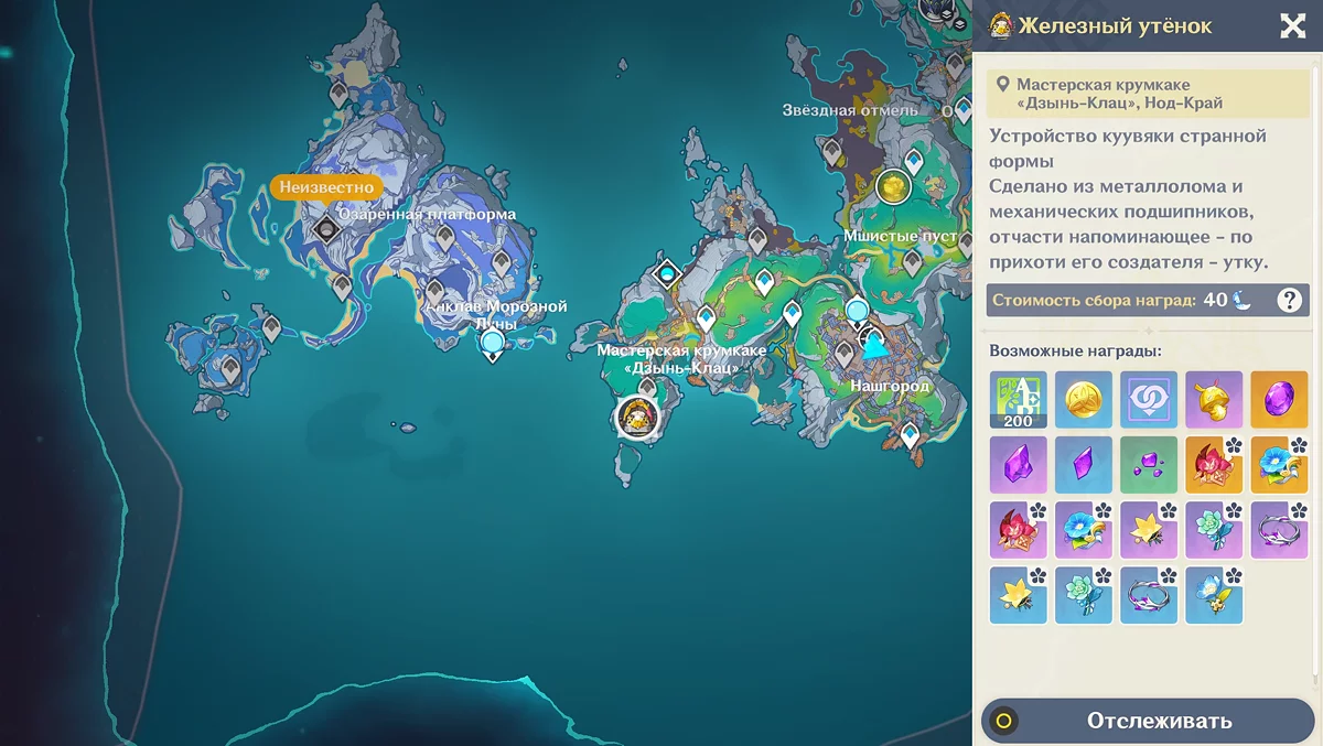 Утёнок подсказывает, где в Нод-Крае находятся диковинные ресурсы. Также Айно может особым образом менять его внешний вид.