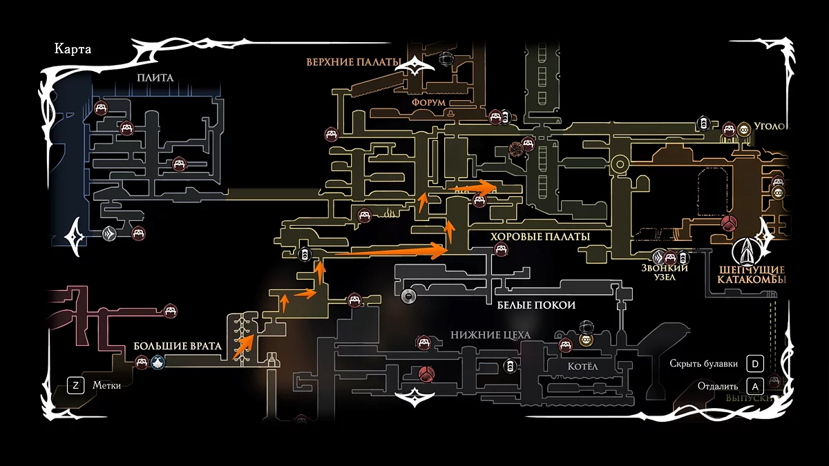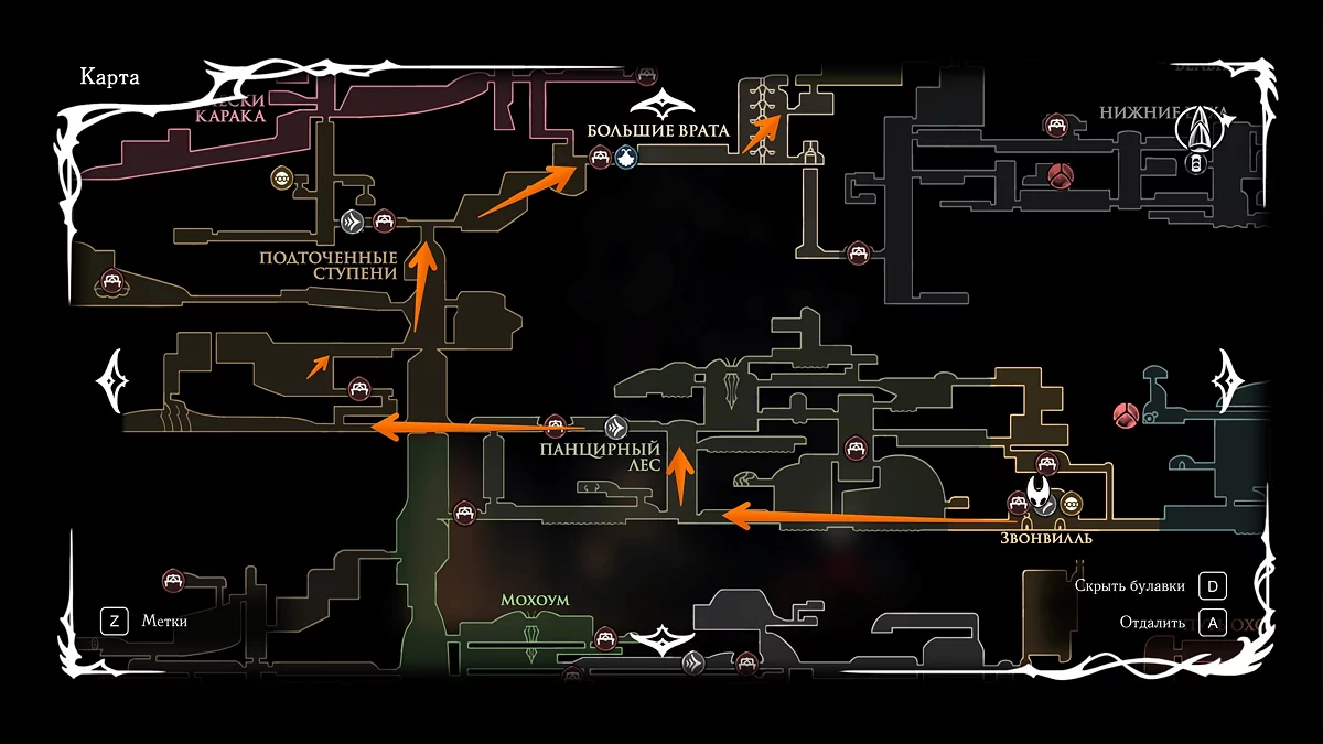 - Интерактивная карта Hollow Knight: Silksong — ключевые места и локации в игре