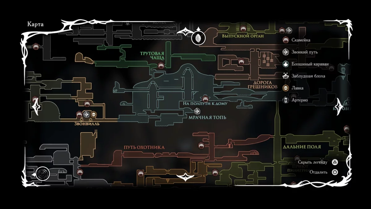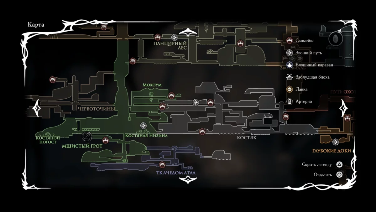 Интерактивная карта Hollow Knight: Silksong — ключевые места и локации в игре -