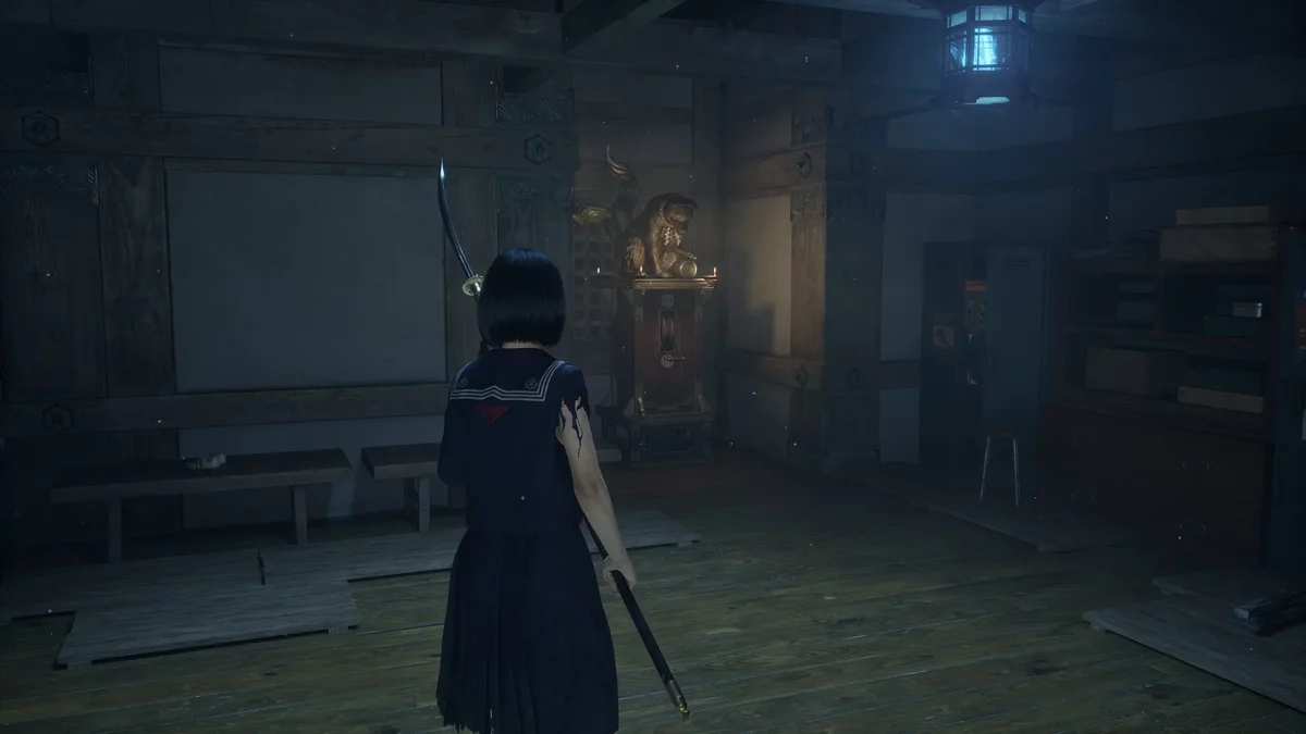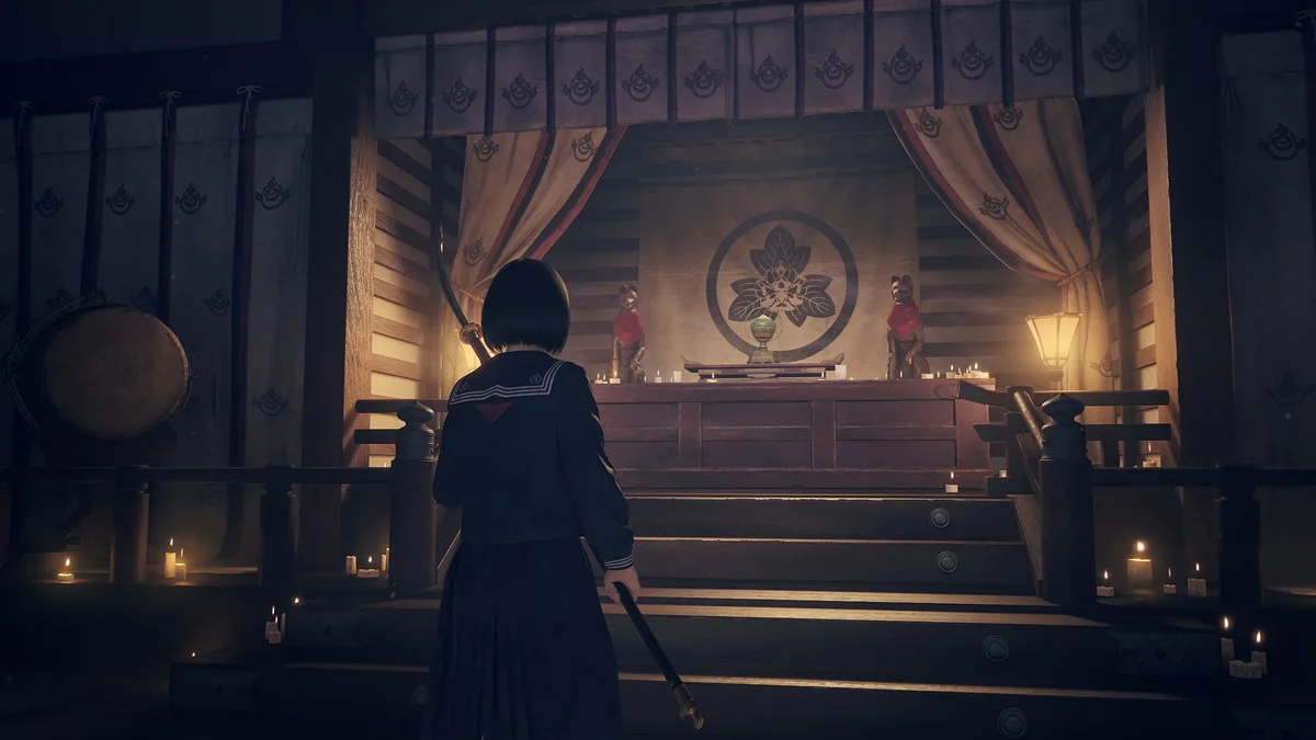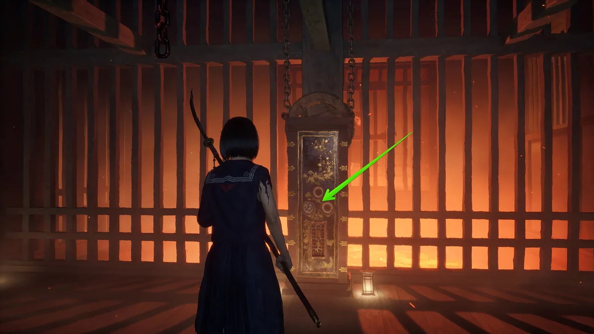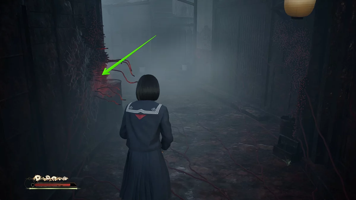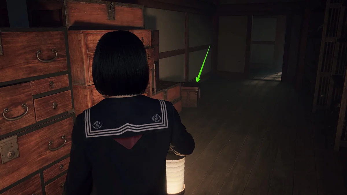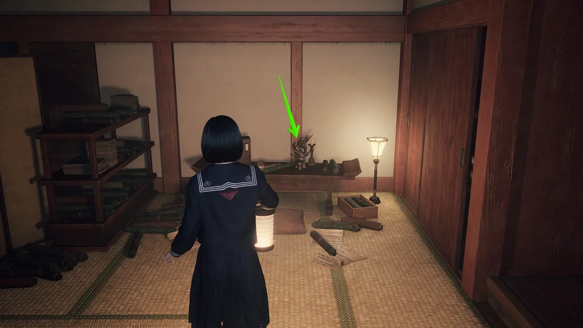 Двигайтесь вперед за мужчиной в маске, у него в руке будет синий фонарь. Далее героиня подберет с алтаря нож кайкэн. После продолжайте следовать за незнакомцем.
