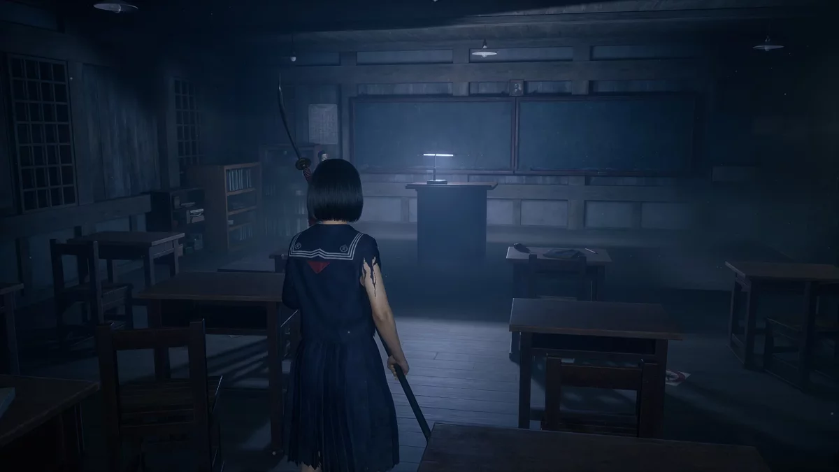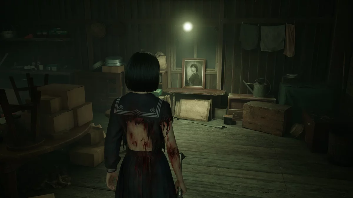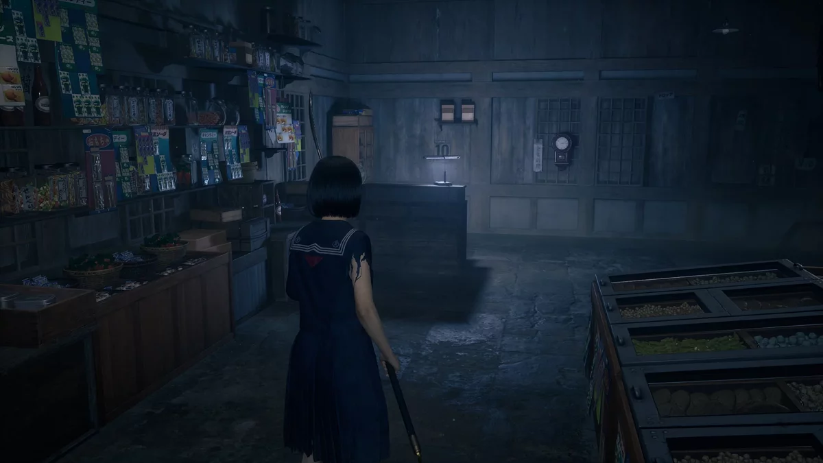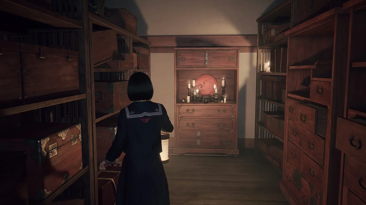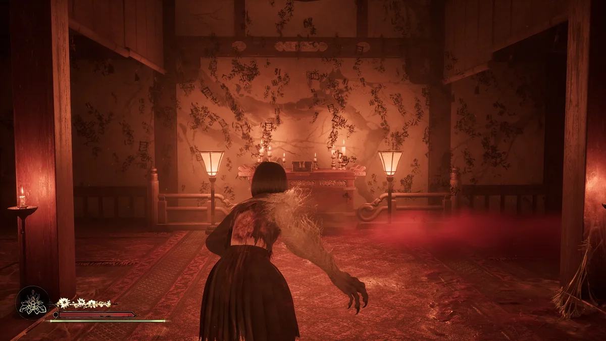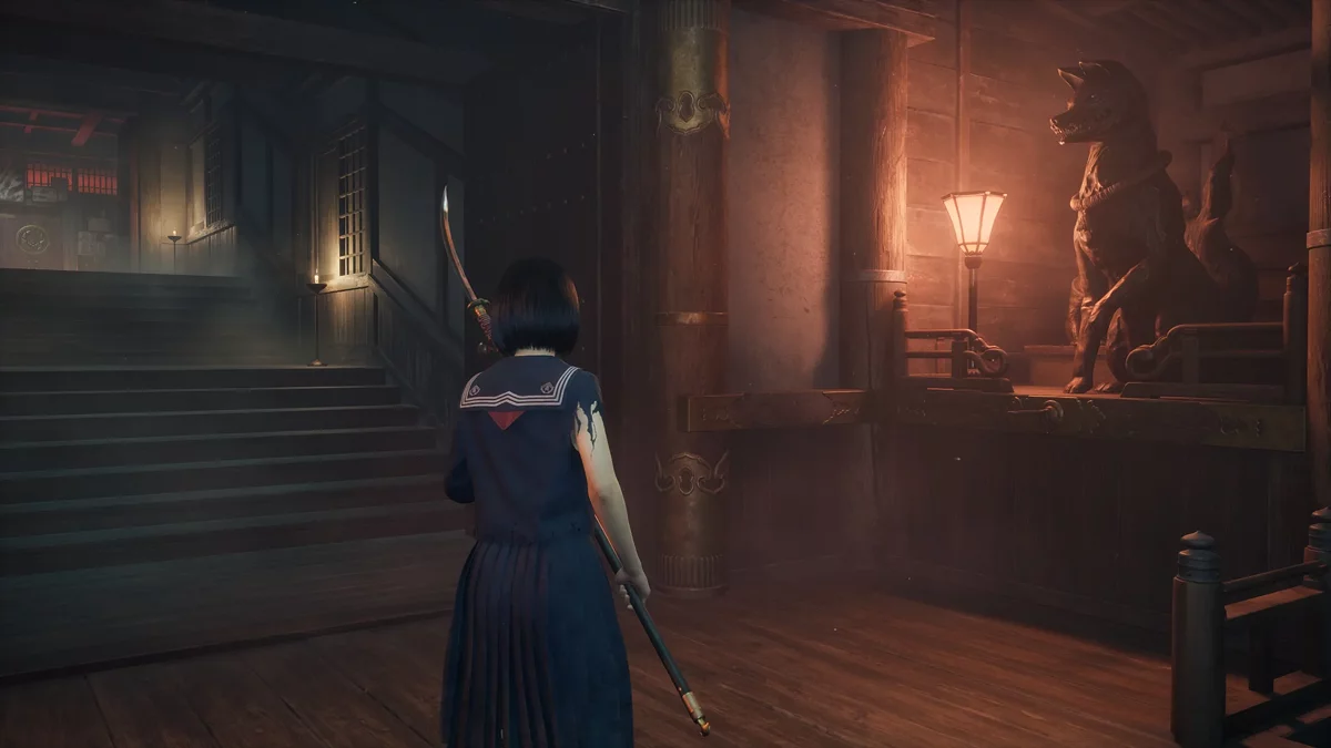 Двигайтесь вперед за мужчиной в маске, у него в руке будет синий фонарь. Далее героиня подберет с алтаря нож кайкэн. После продолжайте следовать за незнакомцем.