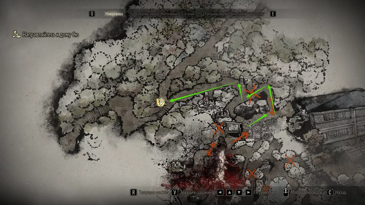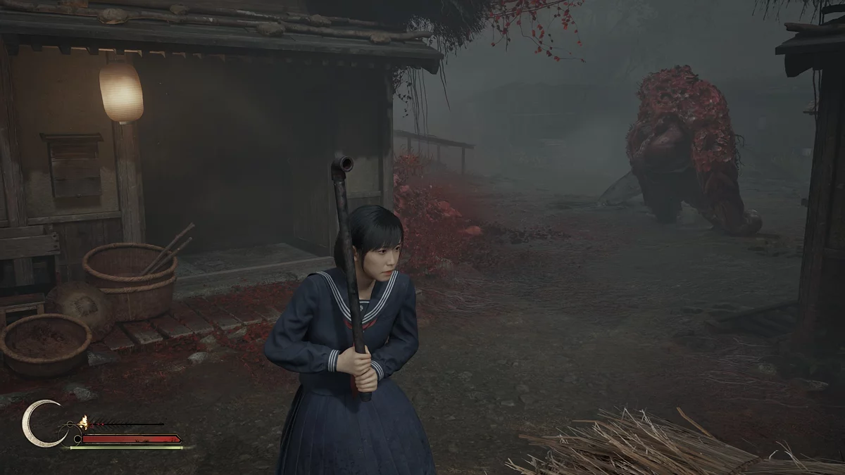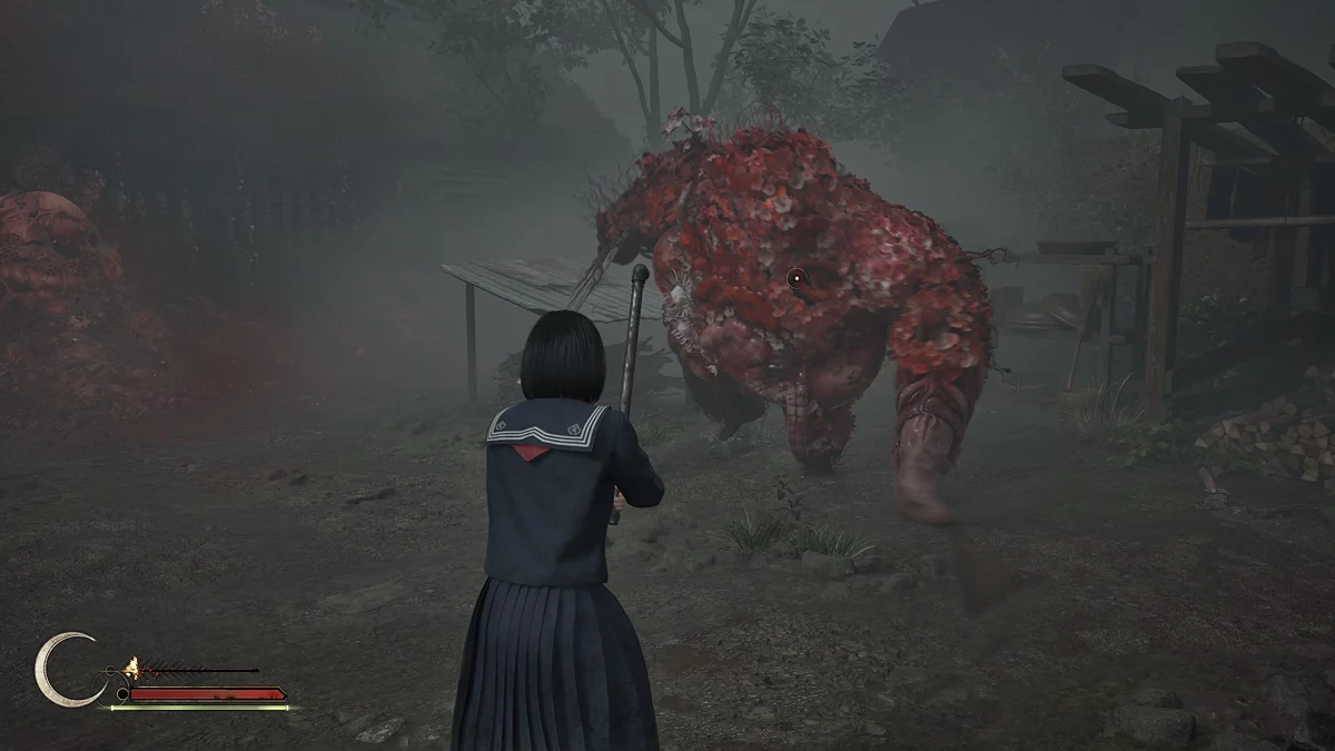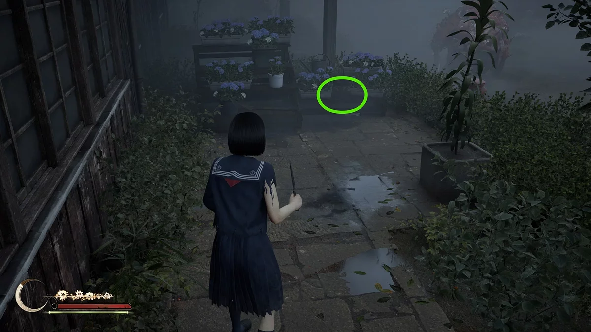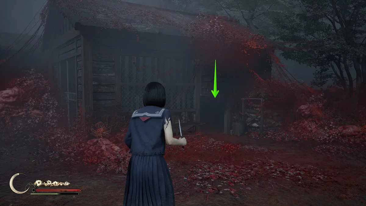 Двигайтесь вперед и одолейте матку. Следуйте на север, обойдите дом с правой стороны и выйдете на тропу из пролога. Отправляйтесь к дому Хинако, избегая столкновений с монстрами. Только на самом верху предстоит убить прыгуна с многоголовым.