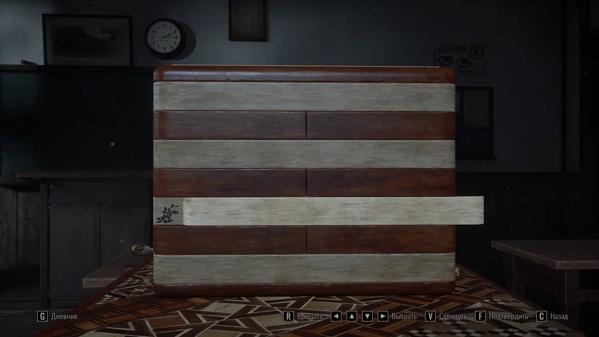 Вернитесь в главный коридор, подойдите к последней двери и повесьте пожелтевший календарь на гвоздик справа. Таким образом вы обеспечите проход между всеми уровнями дома Симидзу.