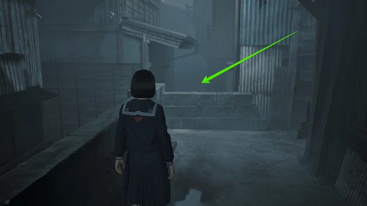 Когда вы убьёте своё первое чудовище, пройдите вперед и пересеките реку через мостик, где на героиню нападёт очередной монстр. Можете его выманить на себя и пройти мимо. Далее нужно подняться по лестнице, повернуть направо и уйти во дворы.