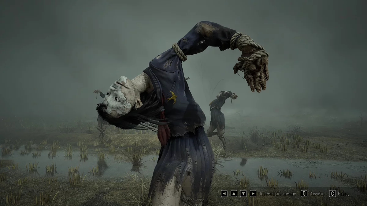 Подберите рядом с куклой тетрадку. Дальше нужно прочитать записку на пугале с белым мешком на голове и вытащить из правильной куклы флеш-карточку пять раз подряд. В случае ошибки манекен нападёт на героиню, то же самое произойдёт, если будете медлить.