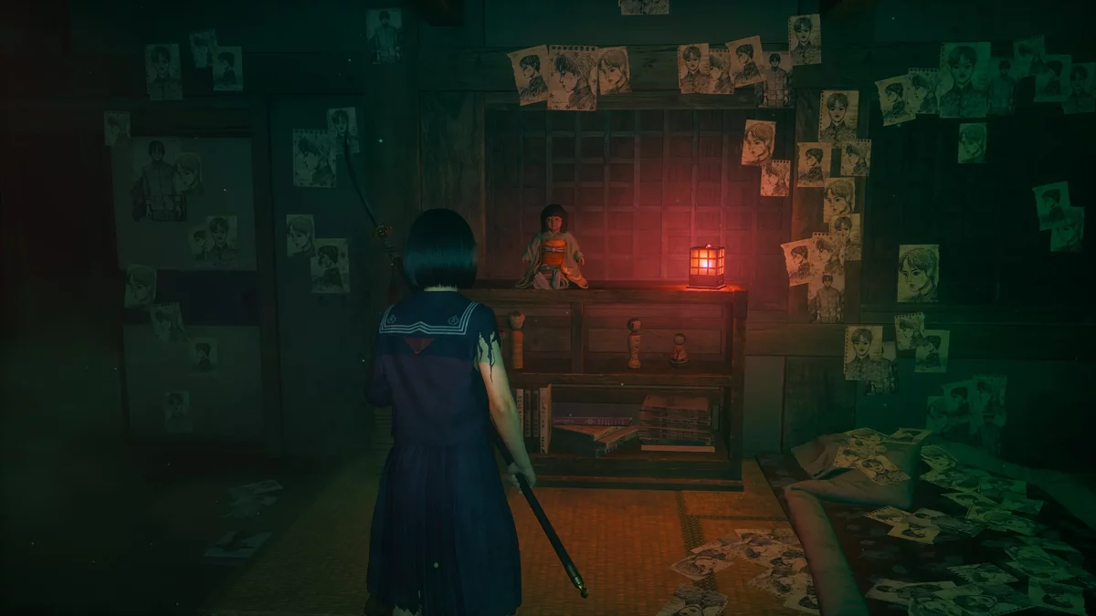На первом уровне дома Симидзу двигайтесь до перехода на следующую локацию. Поверните налево и войдите в первую комнату слева. Вы попадёте в зал со снимками, которые можно поворачивать вверх и вниз. На одной из стен не хватает одной фотографии.