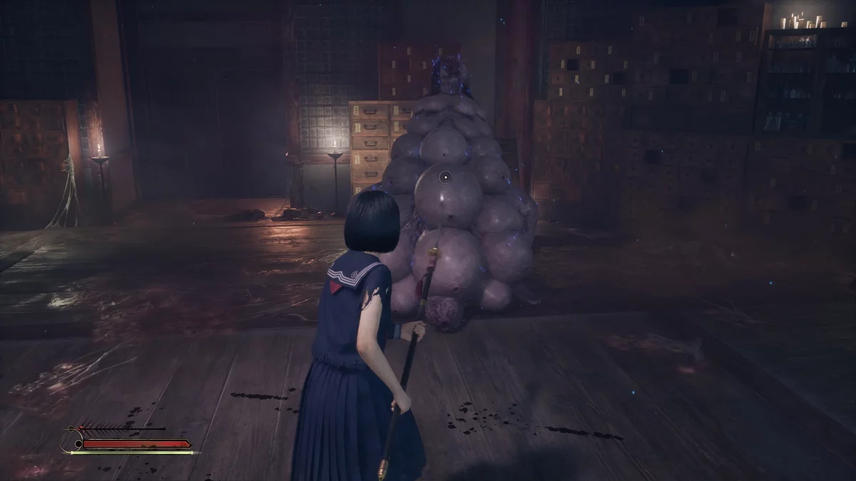 Постарайтесь убить в первую очередь монстра с ножом, чтобы забрать его оружие. К тому же тварь будет сильно мешать, так как передвигается быстрее гиганта. После победы посмотрите катсцену, в которой Хинако потеряла сознание и оказалась в темном святилище.