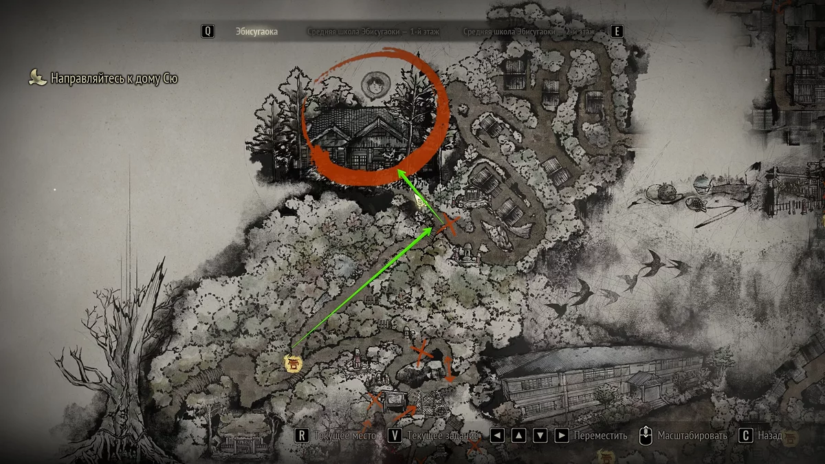 Пройдите через город и направляйтесь к дому семьи Симидзу