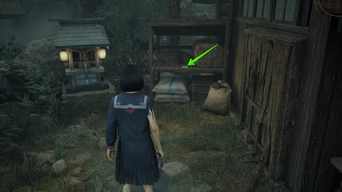 Повернитесь от святилища налево, двигайтесь по тропинке до следующего дома и посмотрите вниз.