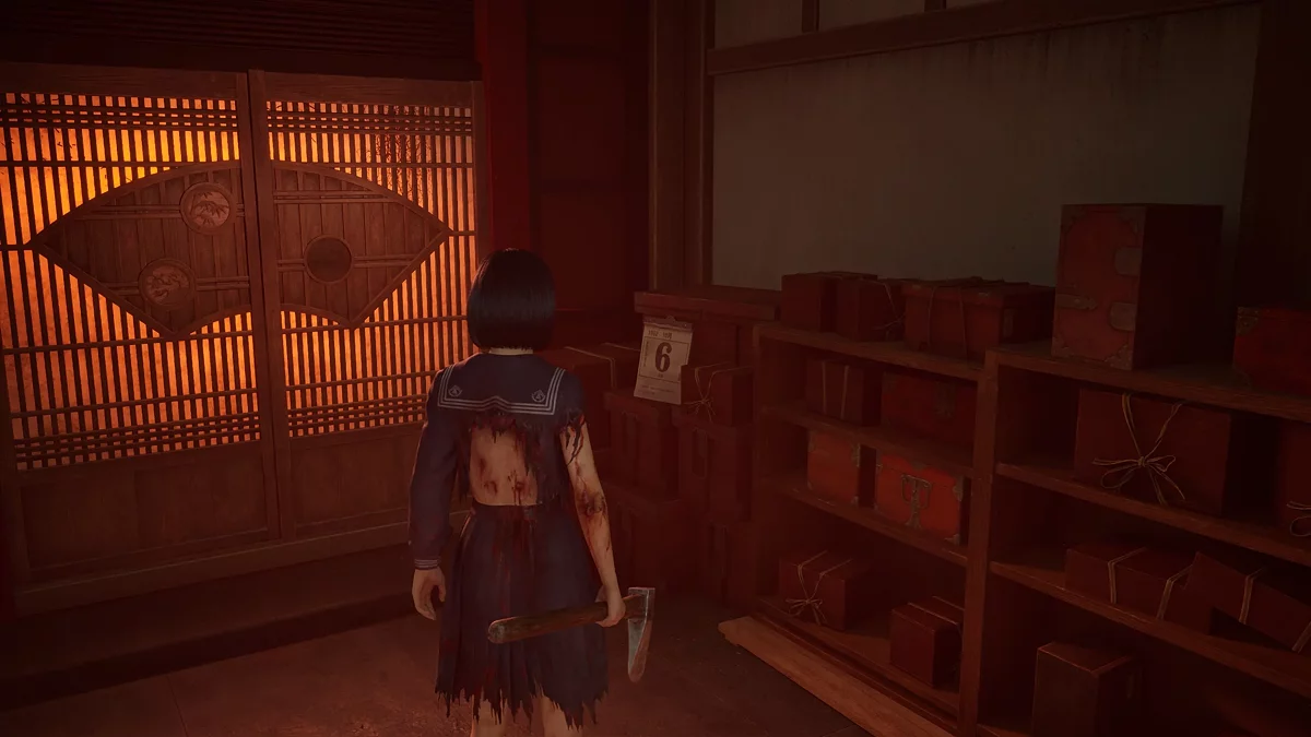 Дом Хинако превратится в трехуровневую локацию с несколькими головоломками. Чтобы продвинуться по сюжету, первым делом необходимо открыть все секции и перебить всех монстров. Сперва нужно уйти в конец правого крыла и подобрать календарь.