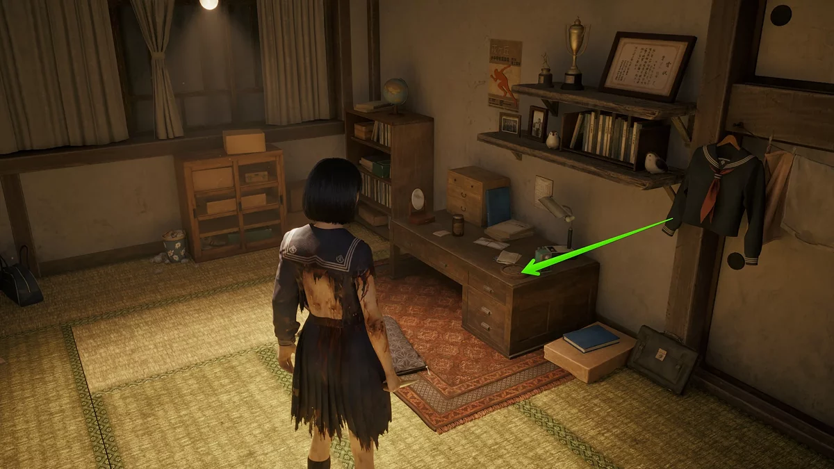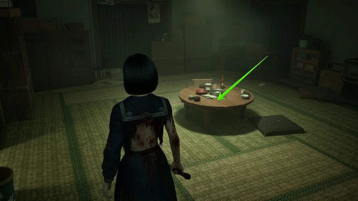 Войдите во второй уровень дома семьи Симидзу. Зайдите в первую дверь слева. Пройдите через комнату в коридор и откройте помещение справа. Посмотрите воспоминание Хинако о бытовой ссоре и подберите с обеденного стола пожелтевший календарь.