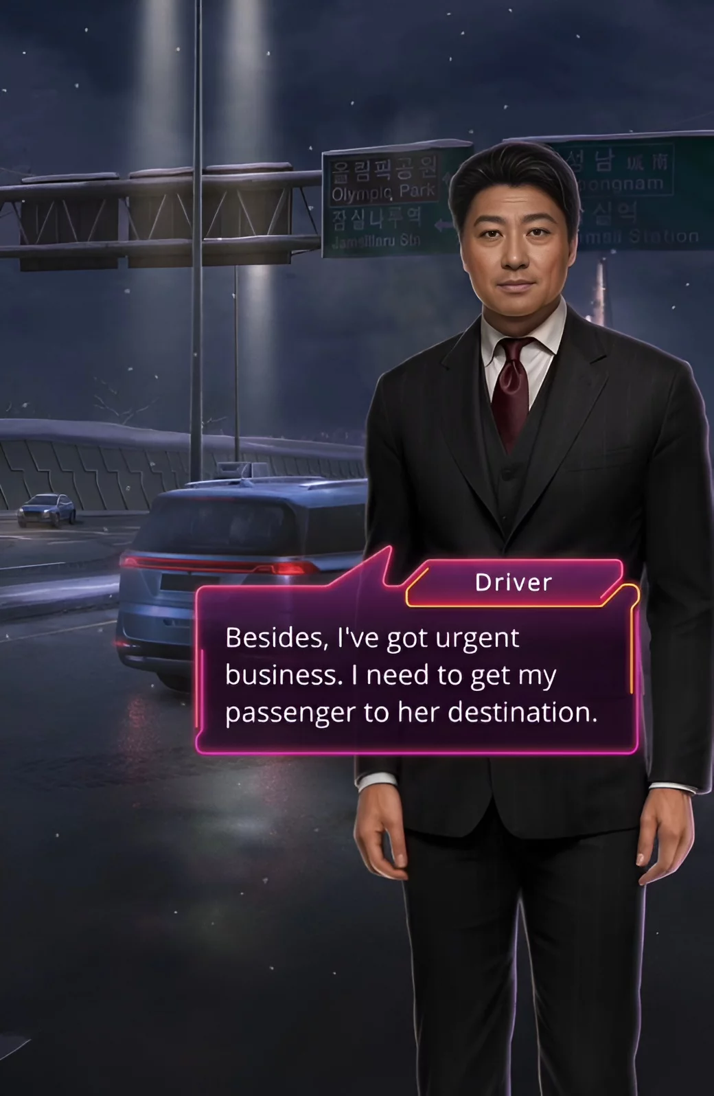 Минхёк недоволен, что вы его не предупредили о поездке. Но времени на всё не хватает, и так приходится работать на износ. Ваша героиня обратила внимание, что водитель наблюдает за ней и постоянно что-то уточняет через смартфон.
