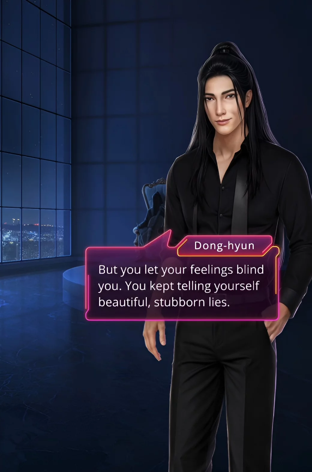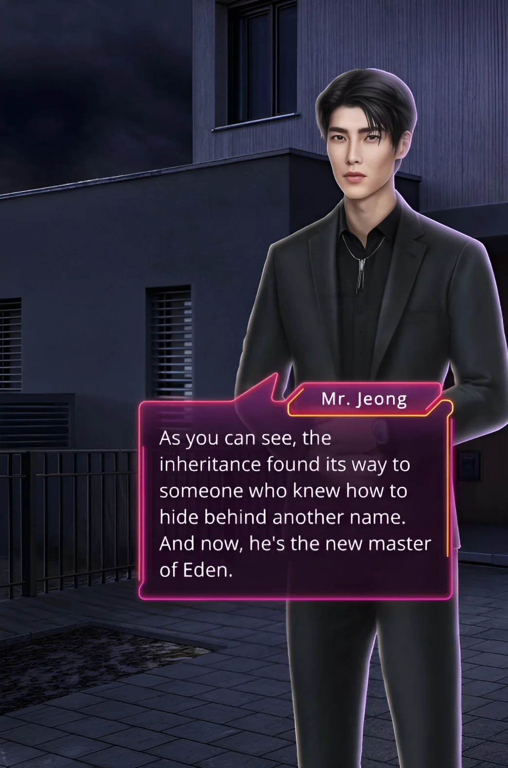 Вы оказались в здании со стеклянными стенами и гранитным полом. Мужчина приказал менеджеру покинуть помещение. Эдемом оказался Донхён. Он достал из брюк фотографию и бросил её на пол. Этот тот самый кадр, который может испортить жизнь вашей героини и Туёну. По словам парня, о нём никто не узнает.