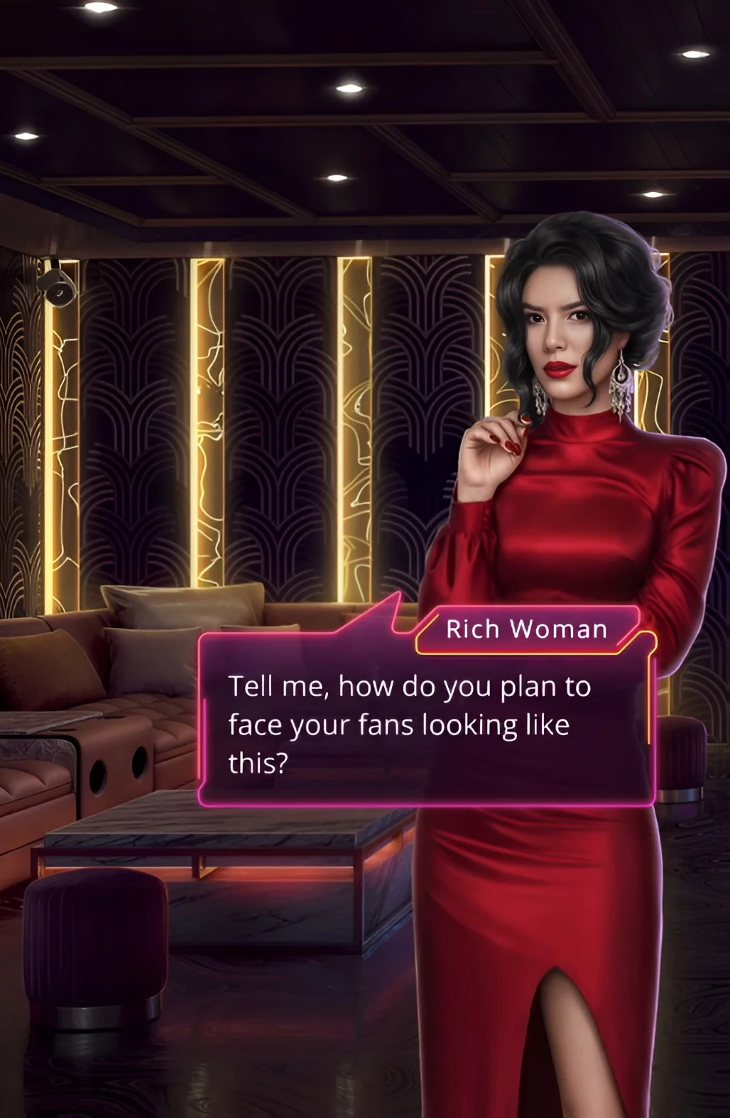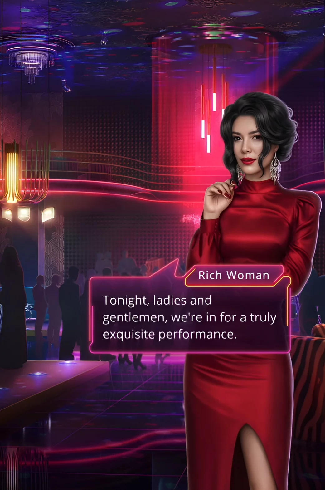 Играем за главную героиню всей истории. Все присутствующие смотрят только на вас. Это немного странно, ведь обычно спонсоры увлечены своими «игрушками». Тем временем, завершилось очередное выступление.