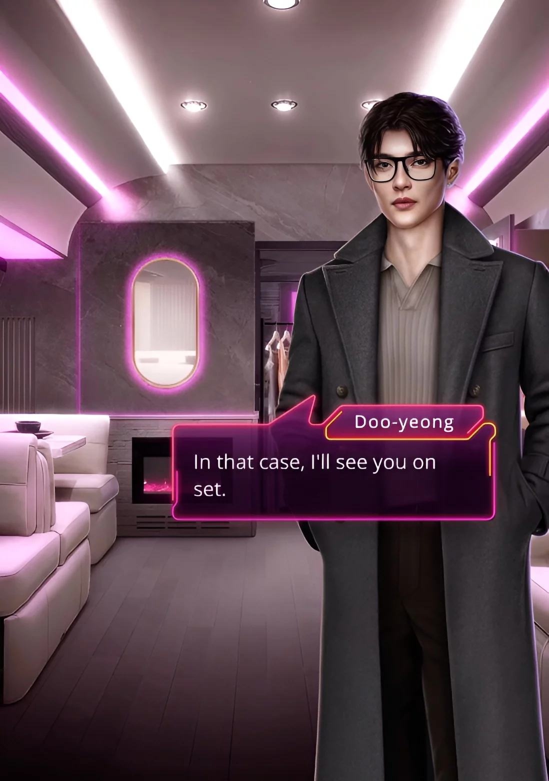 Пришло время съёмок последних сцен дорамы с вашим участием. Гримёр заметил, что ваши волосы стали ломкими. Он сделал вывод, что ваша героиня слишком сильно нервничает в последнее время. Парень хотел попросить, чтобы вам заварили ромашковый чай, но в комнату вошла госпожа Лим и предложила поговорить один на один.