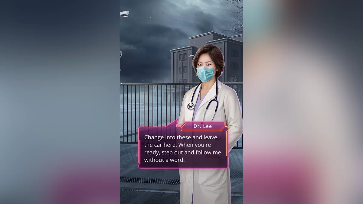 Затем Минхёк захотел поговорить с госпожой Юн наедине. А вы с Кастиэлем начали готовиться к рискованной поездке. В частности, парень поставил на свою машину поддельные номера. Дорога оказалась длинной. Перидически вы отвечали на сообщения Минхёка. На входе в лечебницу вас остановила сотрудница. Она предложила переодеться, после чего пропустила на территорию больницы. У вас будет 15 минут, чтобы поговорить с певцом.