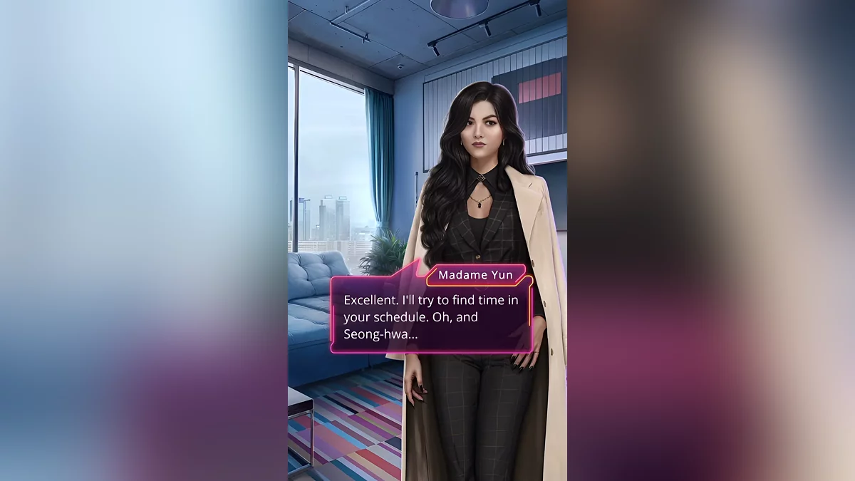 Прошло несколько дней. Госпожа Пак вызвала вас в свой кабинет. Туда же пришёл Туён, причём он приехал в агенство ради вашей героини.