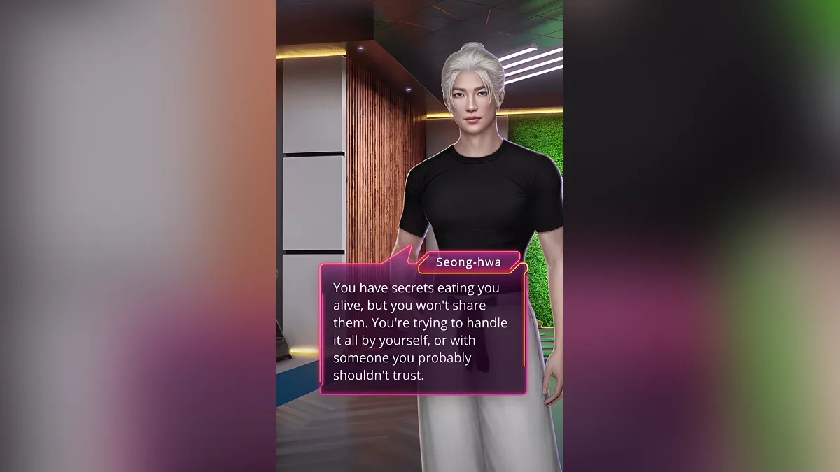 Зашёл Дин и заявил, что госпожа Юн хочет видеть Сонхву, причём срочно. Оставшийся парень начал вести себя немного нагловато. Оказывается, у него есть что-то важное для вашего расследования, но нужную информацию он сообщит только у себя дома. А вашей героине придётся сообщить певцу плохую новость.