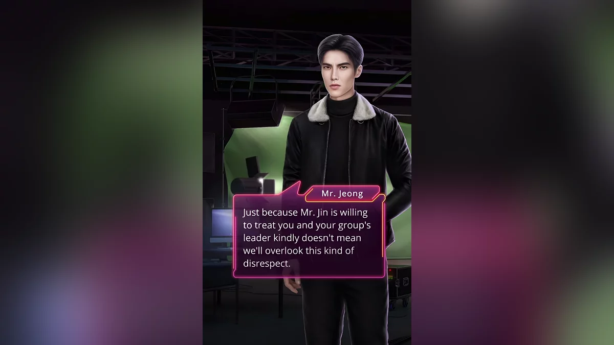 На площадке появилась госпожа Пак и менеджер Туёна. Мужчина возмущался, что выгоду от этой коллаборации получит только одна сторона. Нарушение контракта он воспринял как неуважение и угрожает отменить другие совместные проекты. Вы про них не знаете, поэтому этот момент привлёк ваше внимание. Возможно, господин Чжон тоже замешан. Он заметил вас и напомнил, что пора готовиться к съёмкам. А девушка-менеждер всем своим видом показывала — сейчас лучше не встревать.