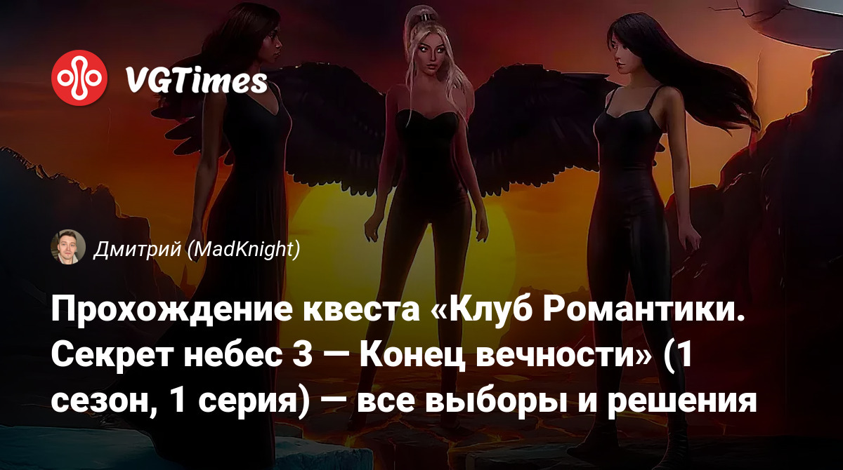 Прохождение квеста «Клуб Романтики. Секрет небес 3 — Конец вечности» (1 сезон, 1 серия) — все выборы и решения