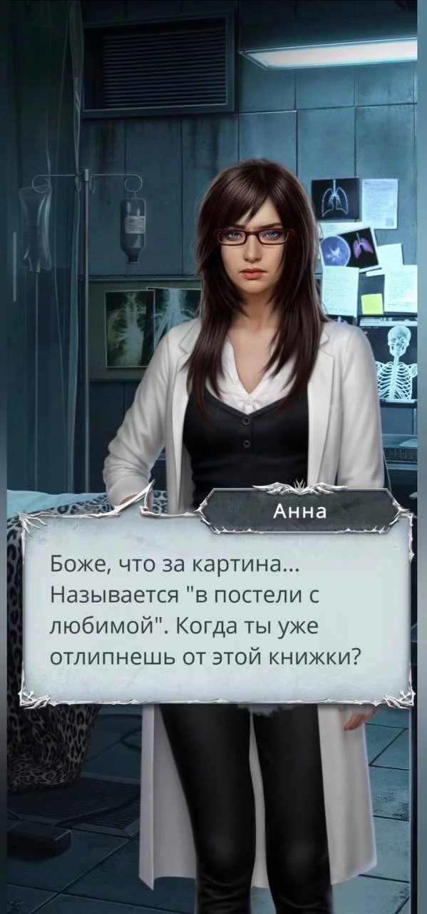 : Анна скажет, что здоровье главной героини стабильно. Если бы не несколько «но». До полного выздоровления ей ещё долго. У героини очень слабое тело, как у комнатного цветка. И как она вообще выжила в апокалипсисе? Анна назначит лекарства до полного выздоровления.