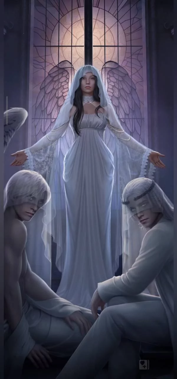 Девушка и ангелы были в храме, вокруг них суетились монахини, готовясь к службе. Донован использовала девушку и сотворила свою богиню, чтобы переманить культистов и управлять людьми через надежду. Женщина поправила ткань на лицах ангелов. Каин и Авель, преисполненные отвращением и тихой яростью, словно статуи сидели по бокам от девушки. Донован использовала их и практически глумилась.