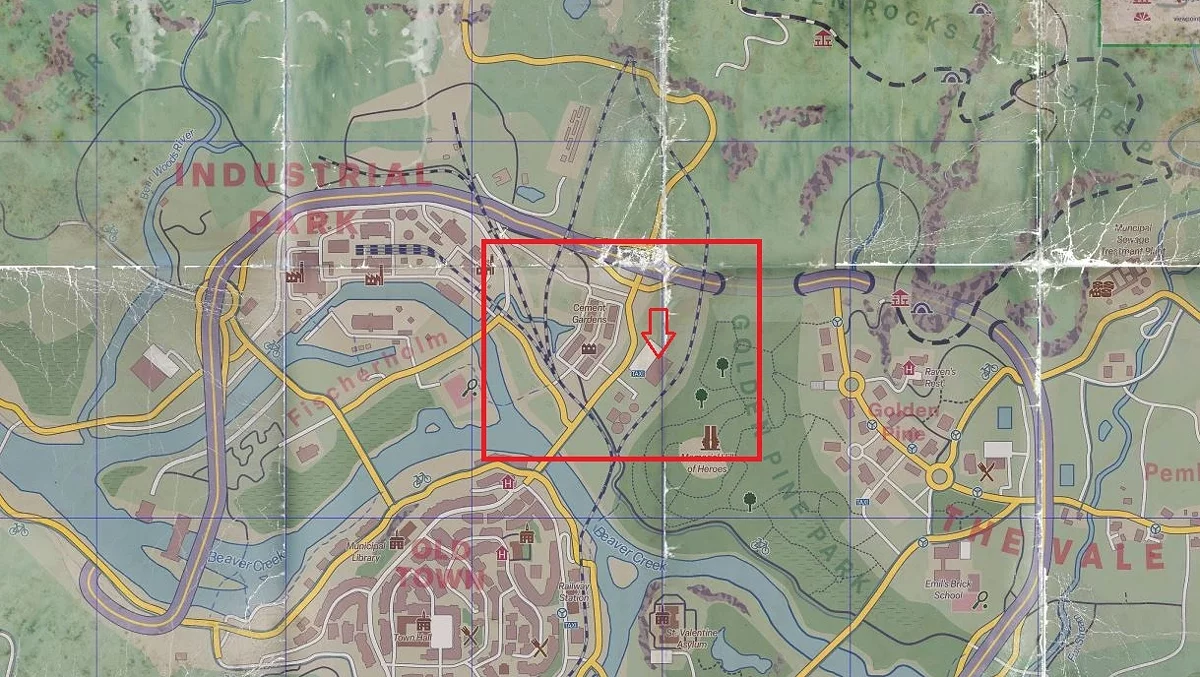 Оружие будет находиться в юго-восточной части Фермерских земель, в небольшом доме — точно в том месте, которое показано на изображении ниже. Нужно попасть в очередное здание с заблокированной дверью, но в которое можно попасть через вентиляционную шахту, спрятанную за деревянными ящиками. Там необходимо запустить генератор, после чего подвести питание к бункеру.