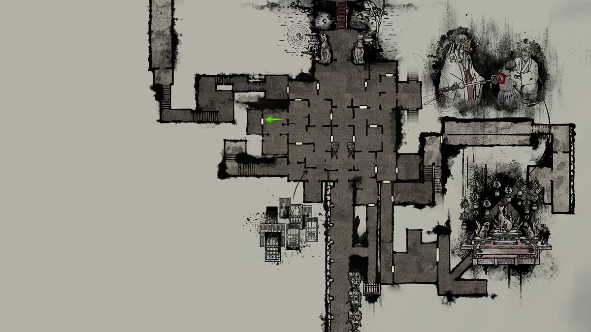 Доберитесь до священной двери и двигайтесь в правое крыло. Обойдите первое здание с левой стороны и зайдите в дом слева. Отыщите оберег за ширмой справа от входа на большом ящике.