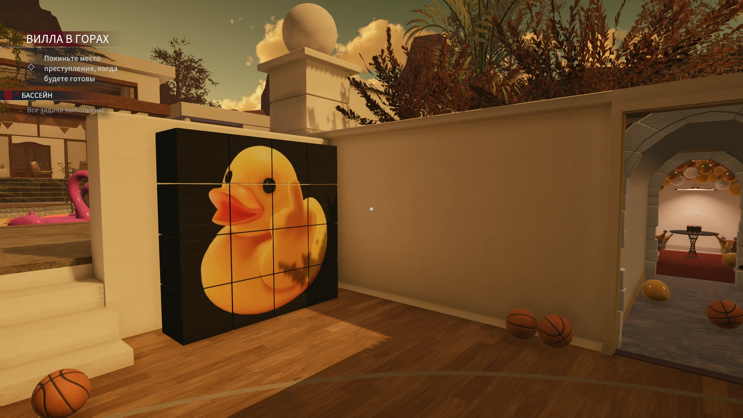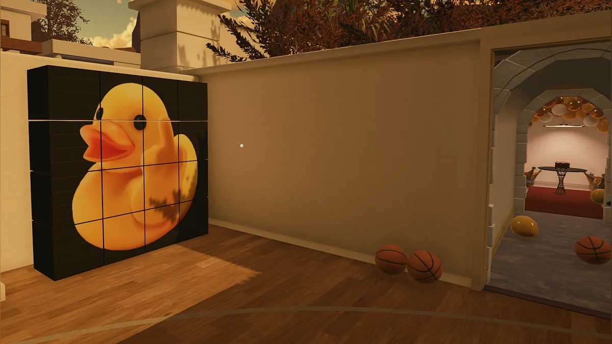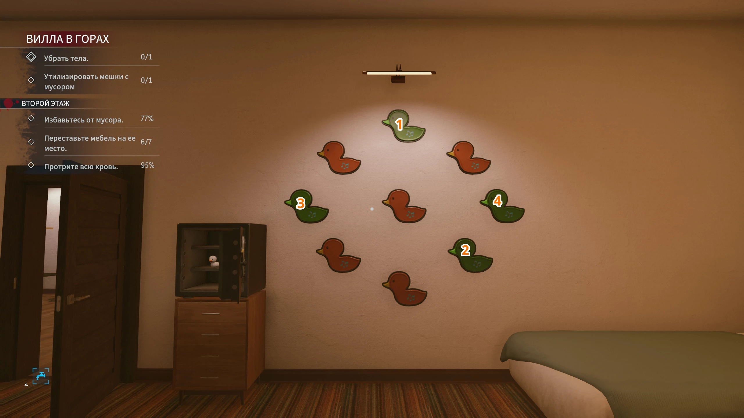 Чтобы открыть сейф, нужно в правильном порядке нажать на уток на стене. Вы можете ориентироваться по звукам, издаваемым при нажатии на сейф, либо посмотреть на скриншот ниже. Положив всех уточек, вы получите код 7-5-3-4, который можно ввести, чтобы открыть дверь.