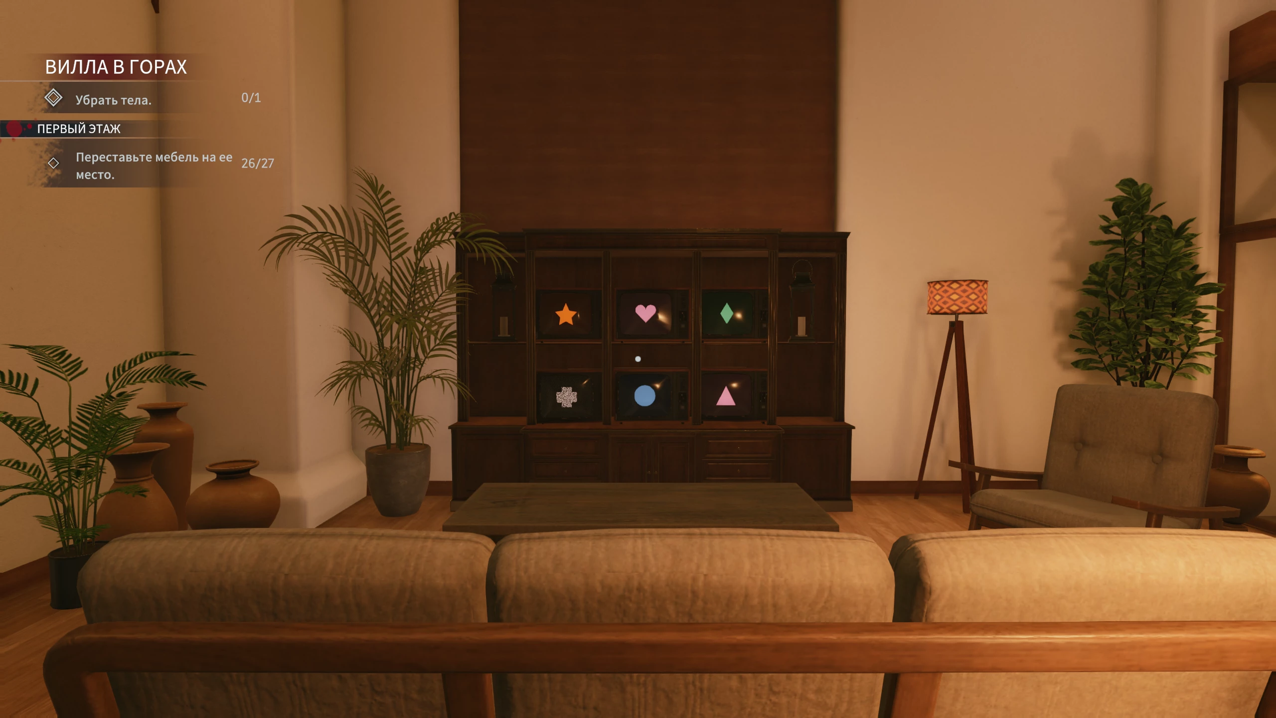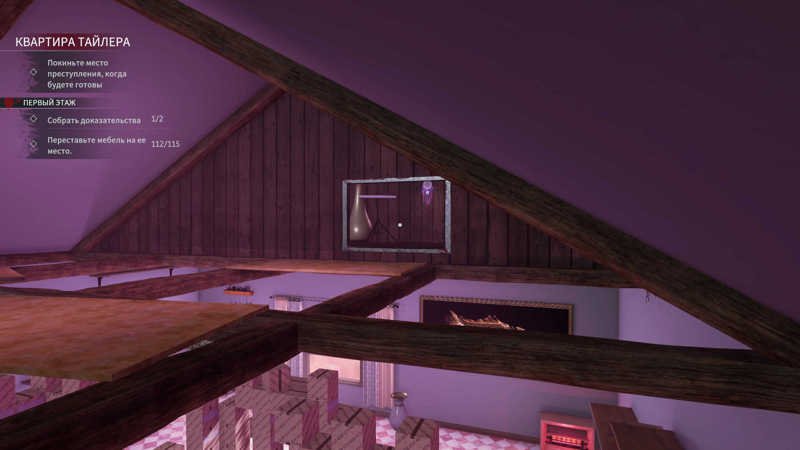 В этой миссии удобней всего двигаться по часовой стрелке, зачищая порталы и вынося всё лишнее в нейтральную комнату. Появившись на уровне, не заходите сразу в портал, за ним на стене спрятан Ловец снов № 1. В комнате «Выставка мебели» на одном из столов лежит труп с уликой «Кинжал».
