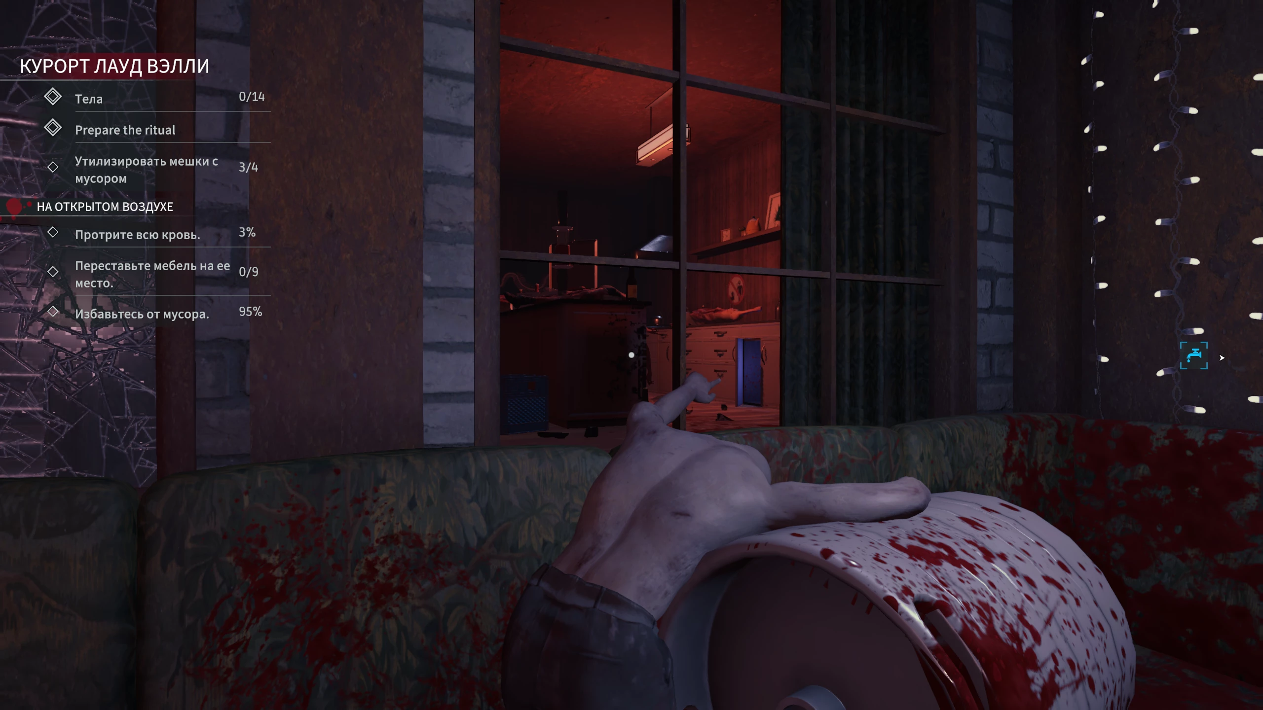 - Через окно в подъезде выйдите в секретное место. Там будет два трупа, немного крови и Ловец снов № 4. После этого отсюда можно спрыгнуть на карниз и очистить его от крови;