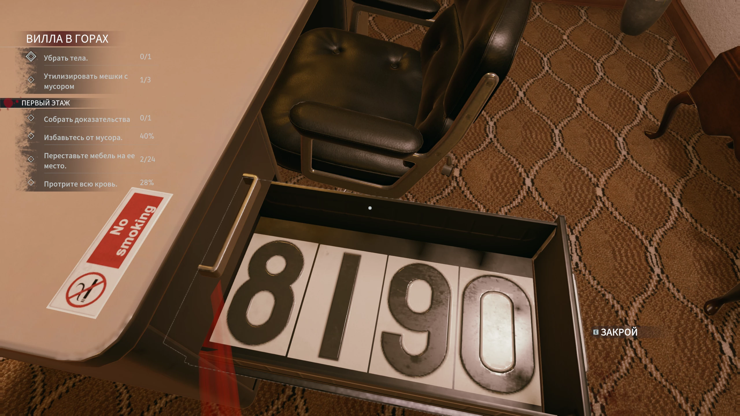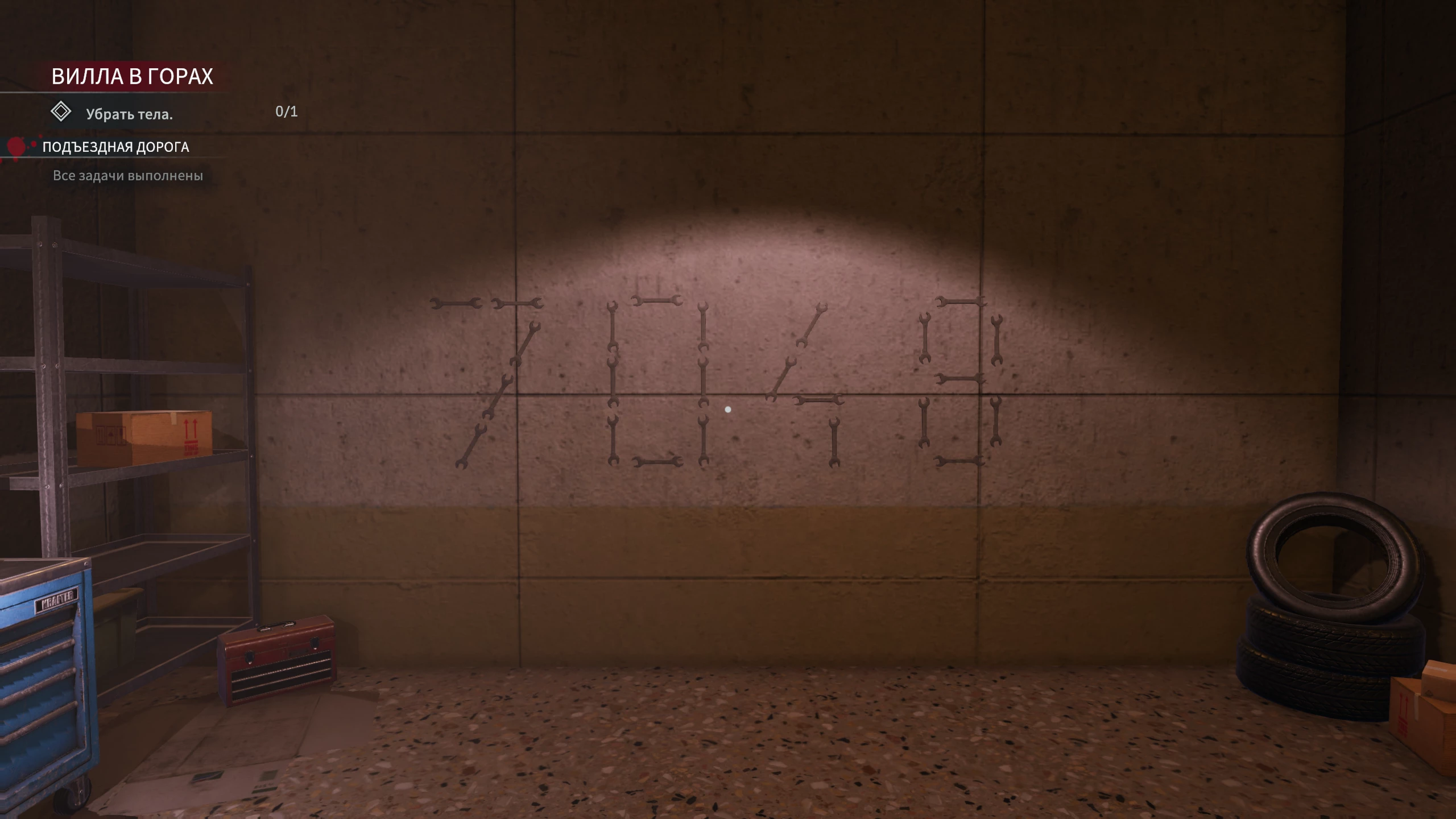 - Ключ М025 расположен на кожанном диване, в секретной комнате за бассейном. Там спрятан труп;