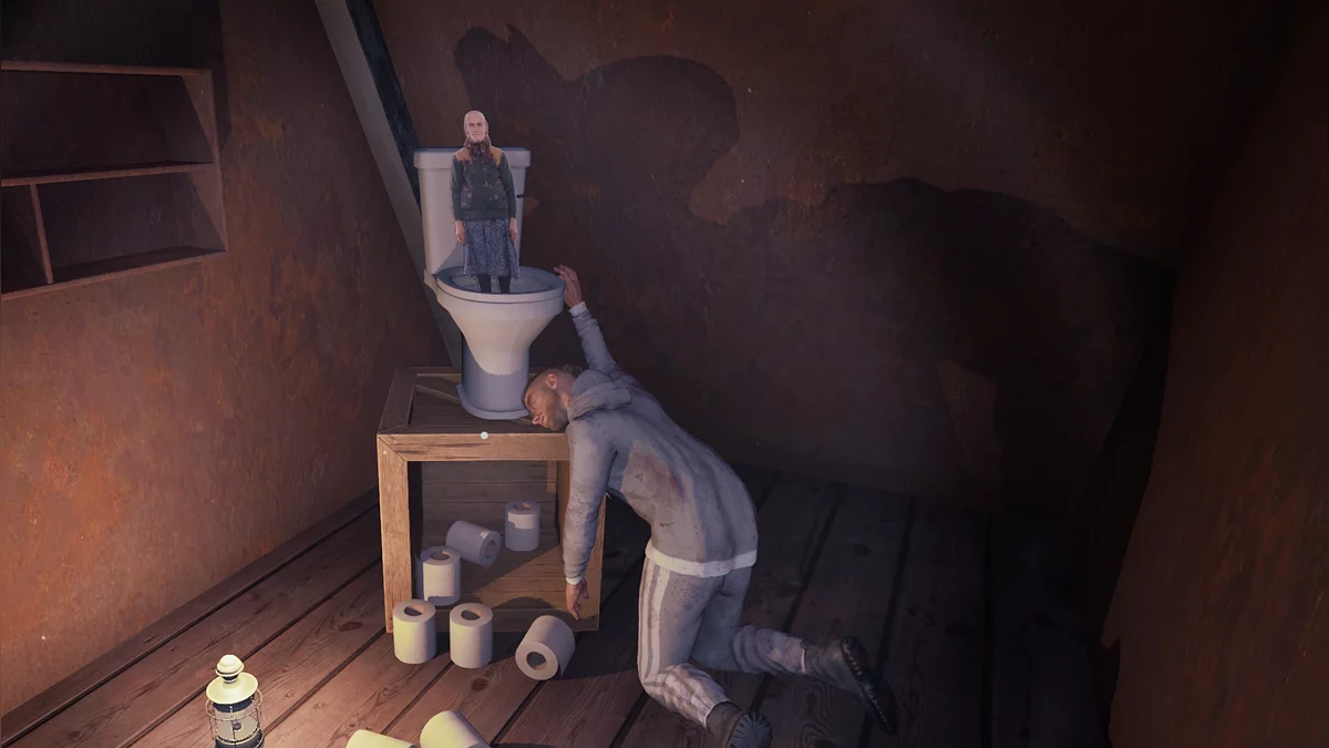 - Заходите в туалет и соберите пустые коробки от пиццы. Возле одно из туалетов будет лежать ключ от туалета. Это необходимо сделать, чтобы открылись следующие комнаты;