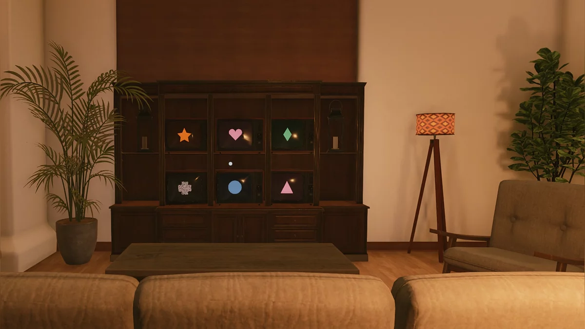 Проход к бассейну откроется, если выставить на всех телевизорах правильные цвета. Правильные картинки разбросаны по другим комнатам. Можете посмотреть на скриншот ниже или обследовать предыдущие помещения самостоятельно.