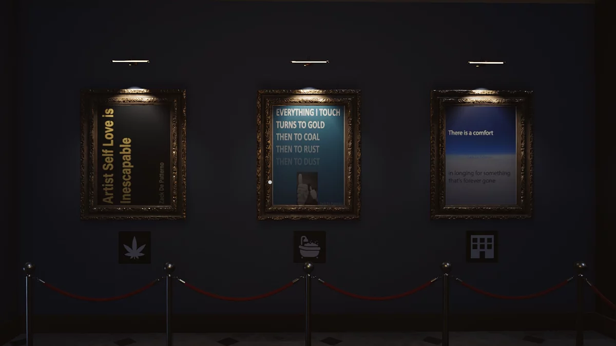 После того как вы откроете ворота, можете забраться в соседнее здание по трубам. Так вы попадёте в музей современного искусства. Для решения головоломки нужно правильно выставить все картины. Правильный порядок вы можете посмотреть на скриншотах ниже. В загадке есть закономерность — количество картин и иконки под ними соответствуют миссиям в игре. В каждой миссии встречается одна из представленных картин (работает только в обычном режиме).