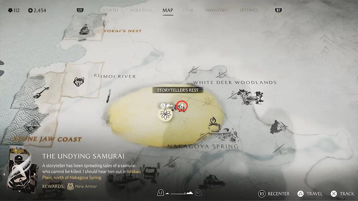 Отправляйтесь на север региона. Вам нужно посетить равнины Исикари и найти лагерь сказителя Угэцу. Воспользуйтесь нашей картой.