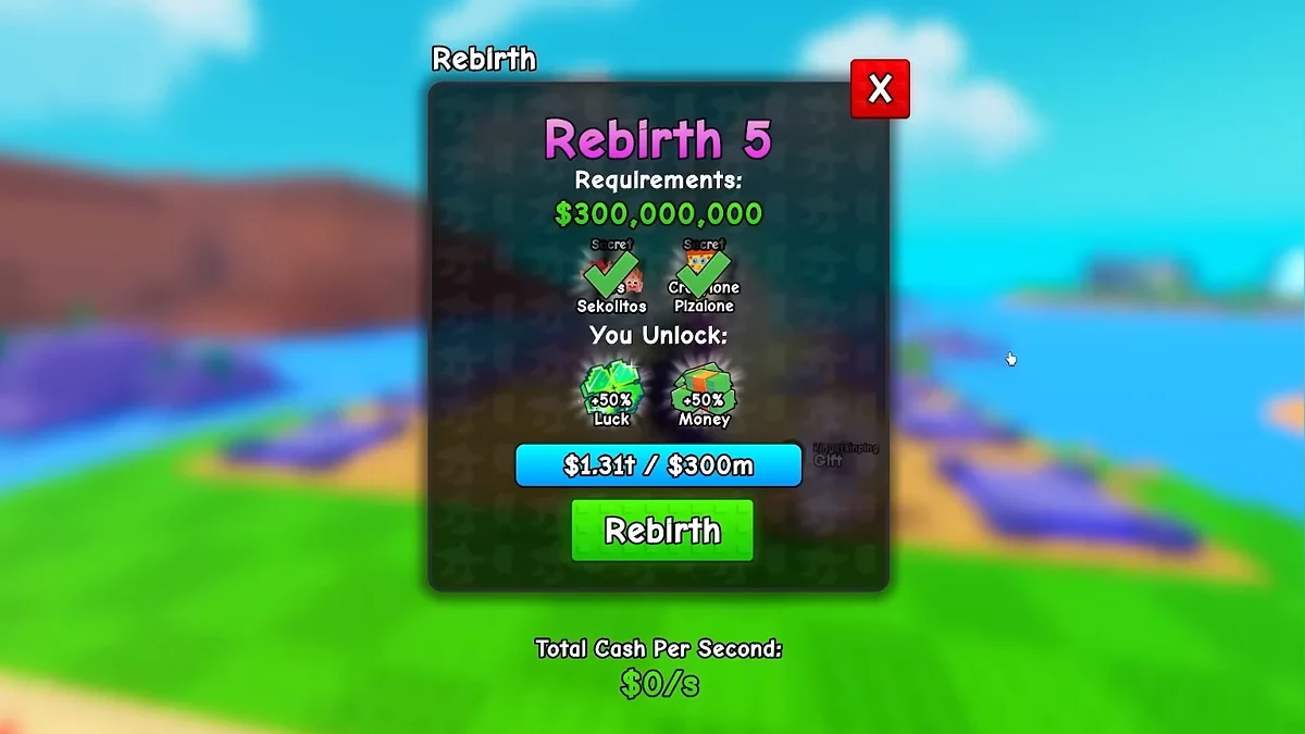 Для пятого перерождения понадобится: $300 000 000, открыть Кразилоне Пиццаоне (Crazylone Pizaione) и Лос Тралалеритос (Los Tralaleritos).