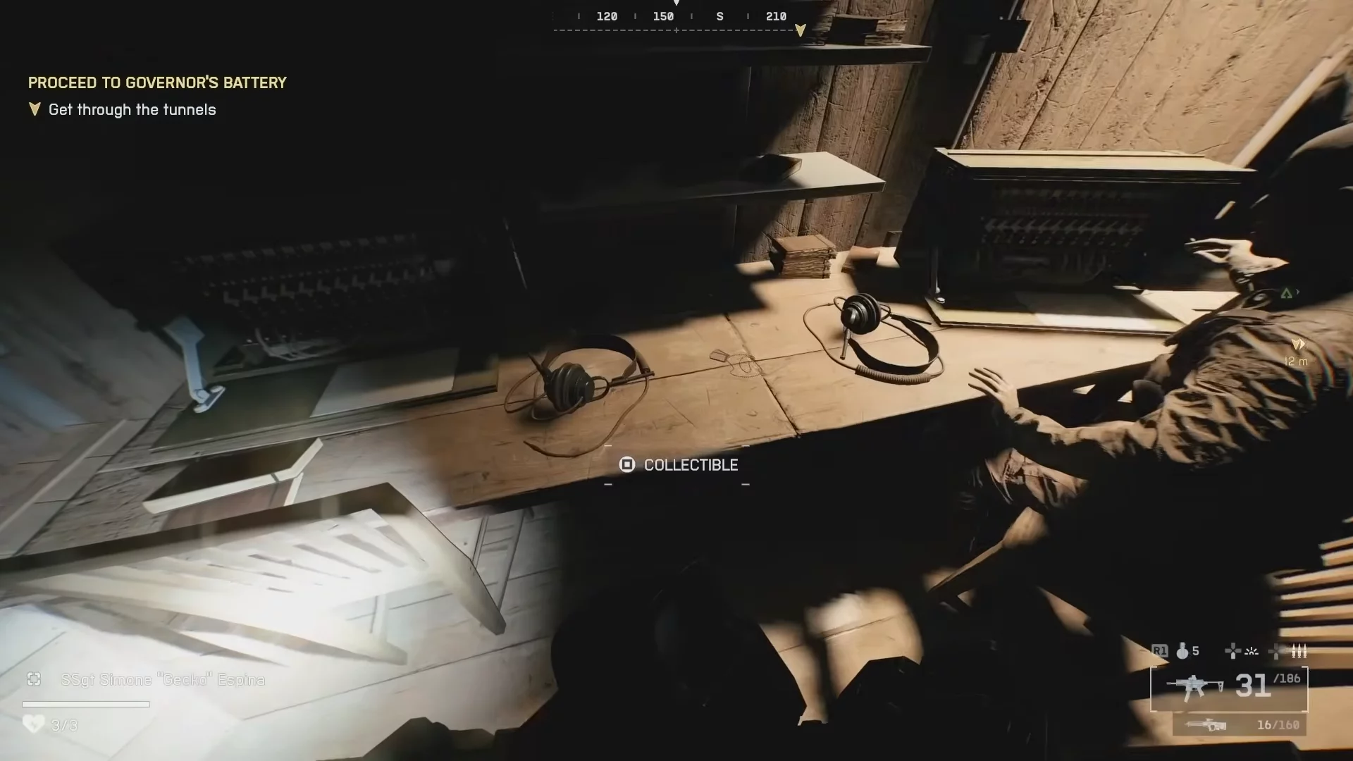 5 — Когда вы уничтожите радарную установку и спуститесь в туннели, вы окажетесь в подземном музее Второй мировой войны. Пройдите через основную экспозицию и спуститесь по лестнице — слева вы заметите манекен радиста. Жетон лежит на столе слева от него.