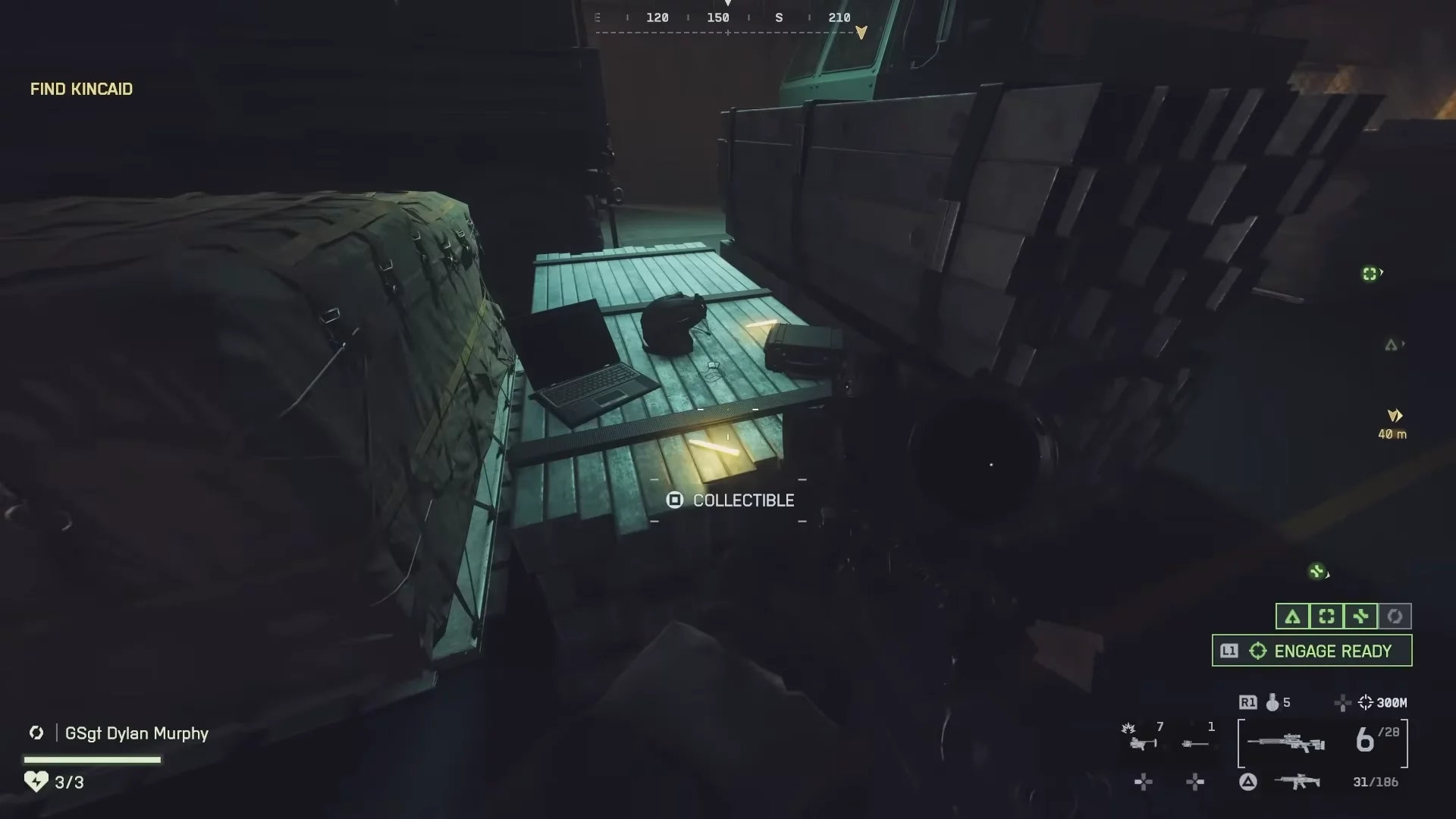 30 — После того как ракета NXC взорвётся и Мёрфи (Murphy) произнесёт свою воодушевляющую речь у входа в бункер, обратите внимание на ящики слева. На одном из них лежит жетон рядом со светящейся палочкой, ноутбуком и шлемом.