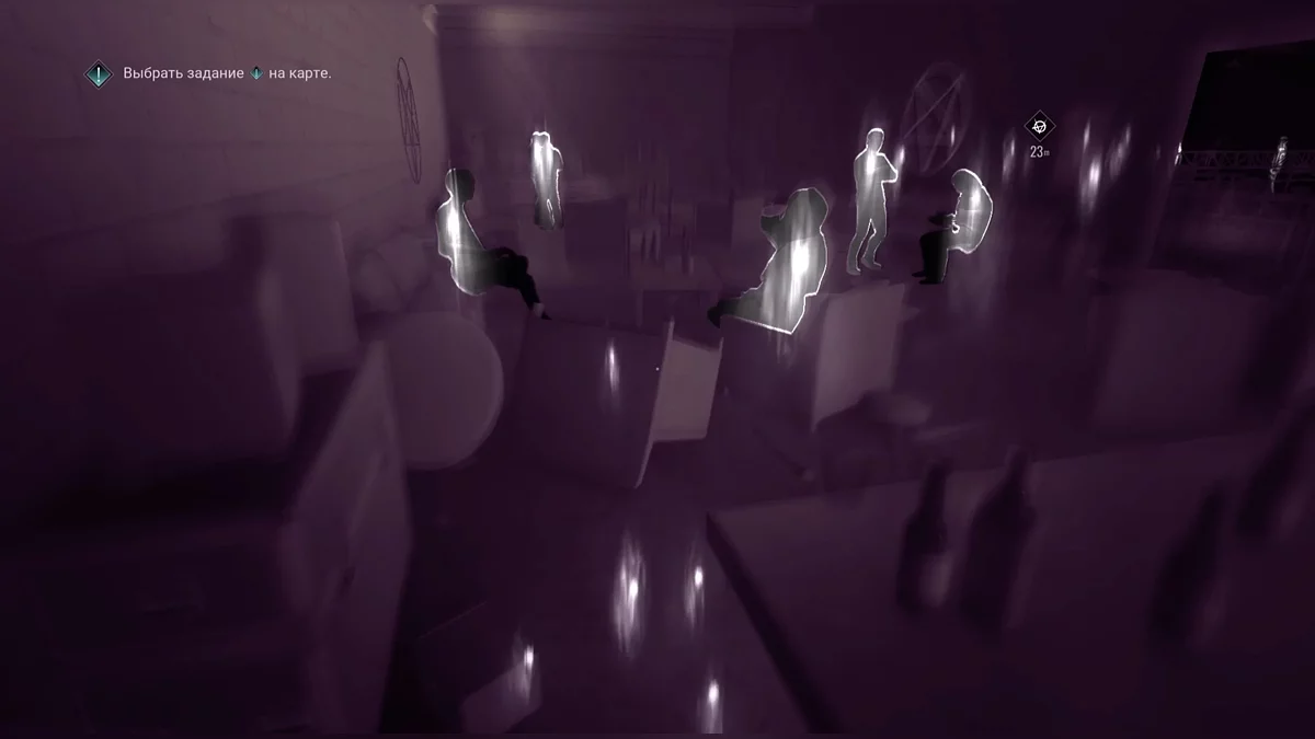 Когда цвета горят ярко — человек находится в резонансе. Такие личности отмечены на миникарте и их можно выслеживать. Неполный резонанс (мерцающий цвет) на карте никак не отображается, их нужно искать своими глазами на местности.