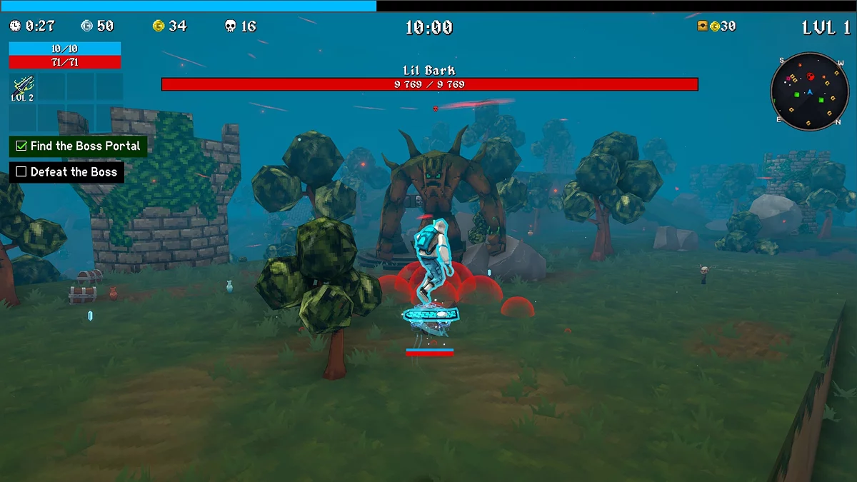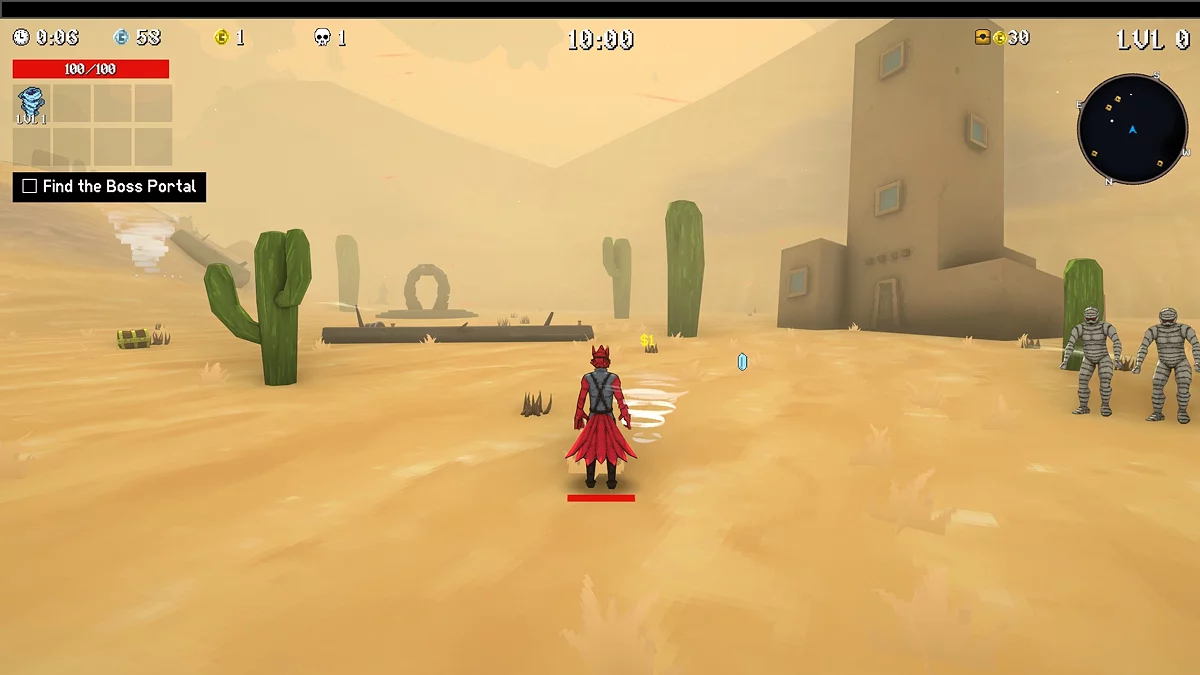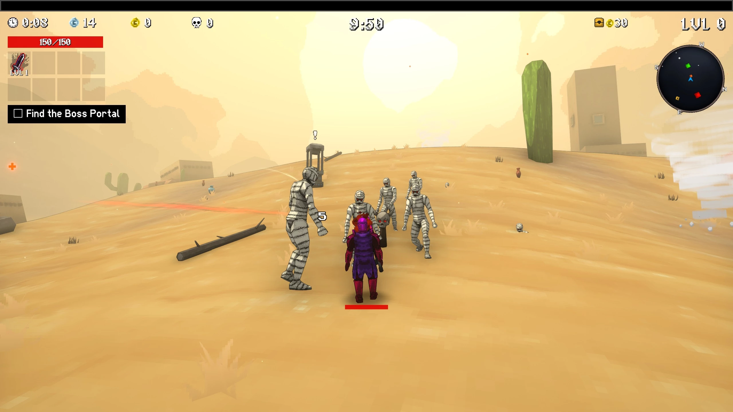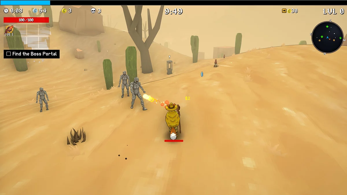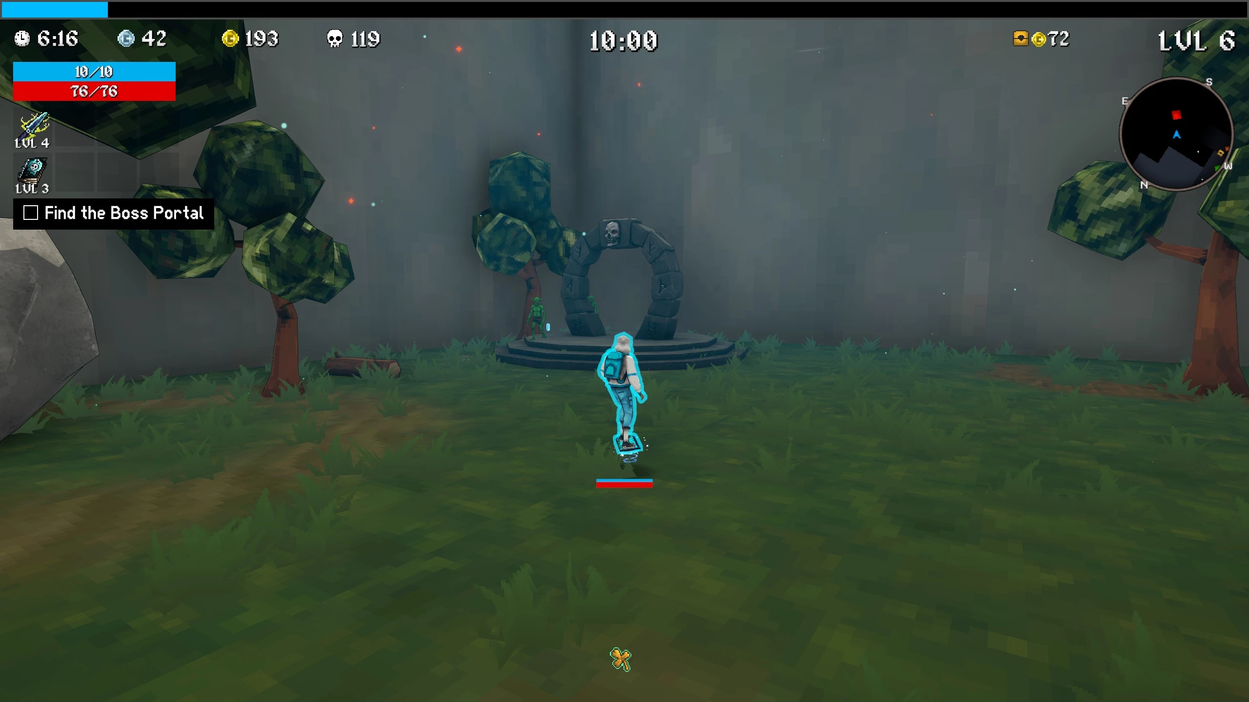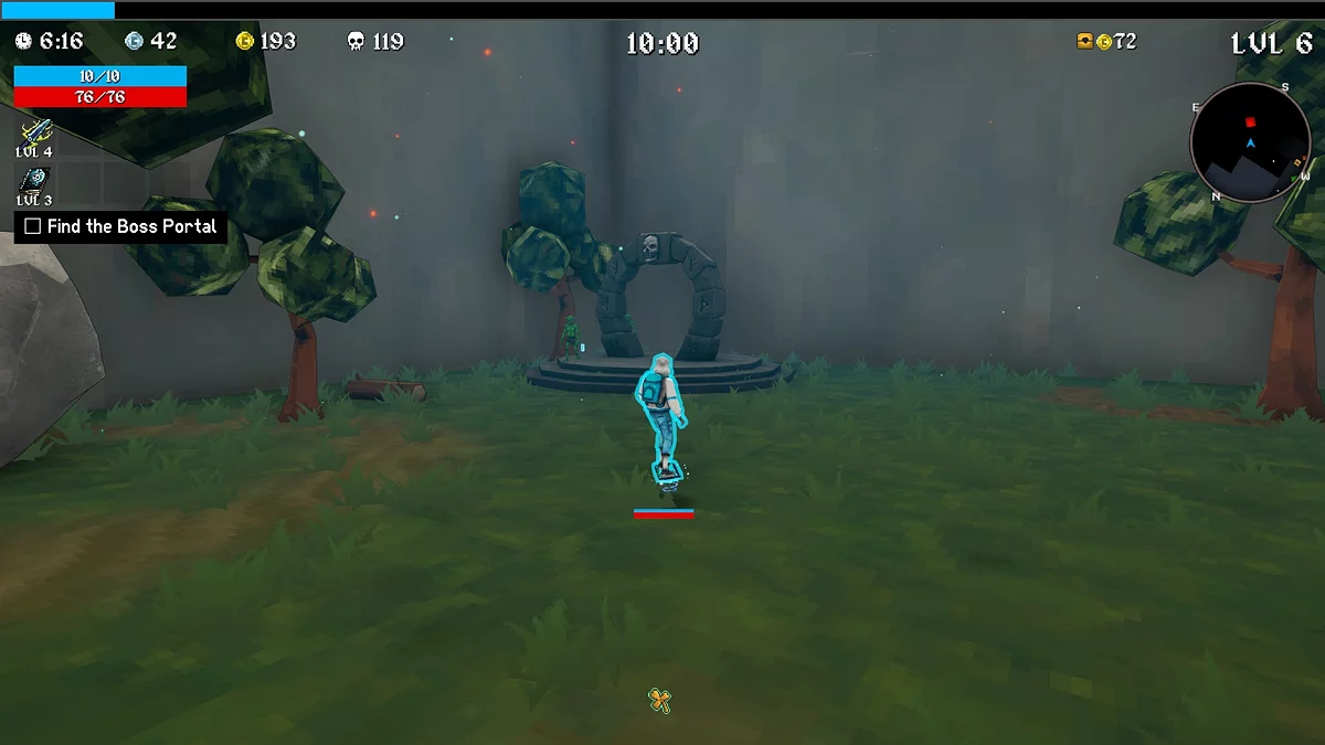 В конце каждого уровня есть портал с боссом, за исключением третьего. Потому что он телепортирует героя на гигантскую арену с финальным врагом. Кроме того, во время забега спавнятся мини-боссы. Это происходит после второй и седьмой минуты забега.