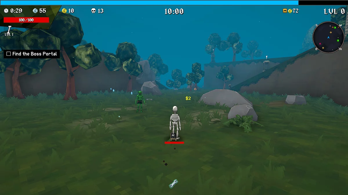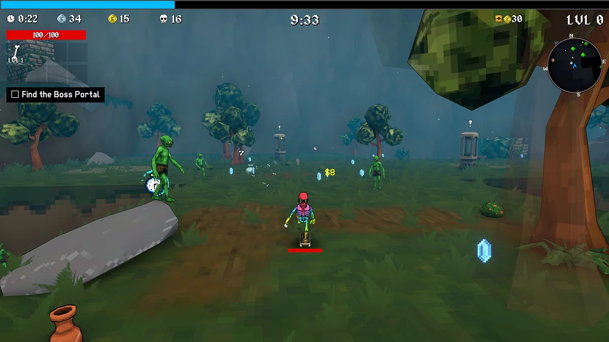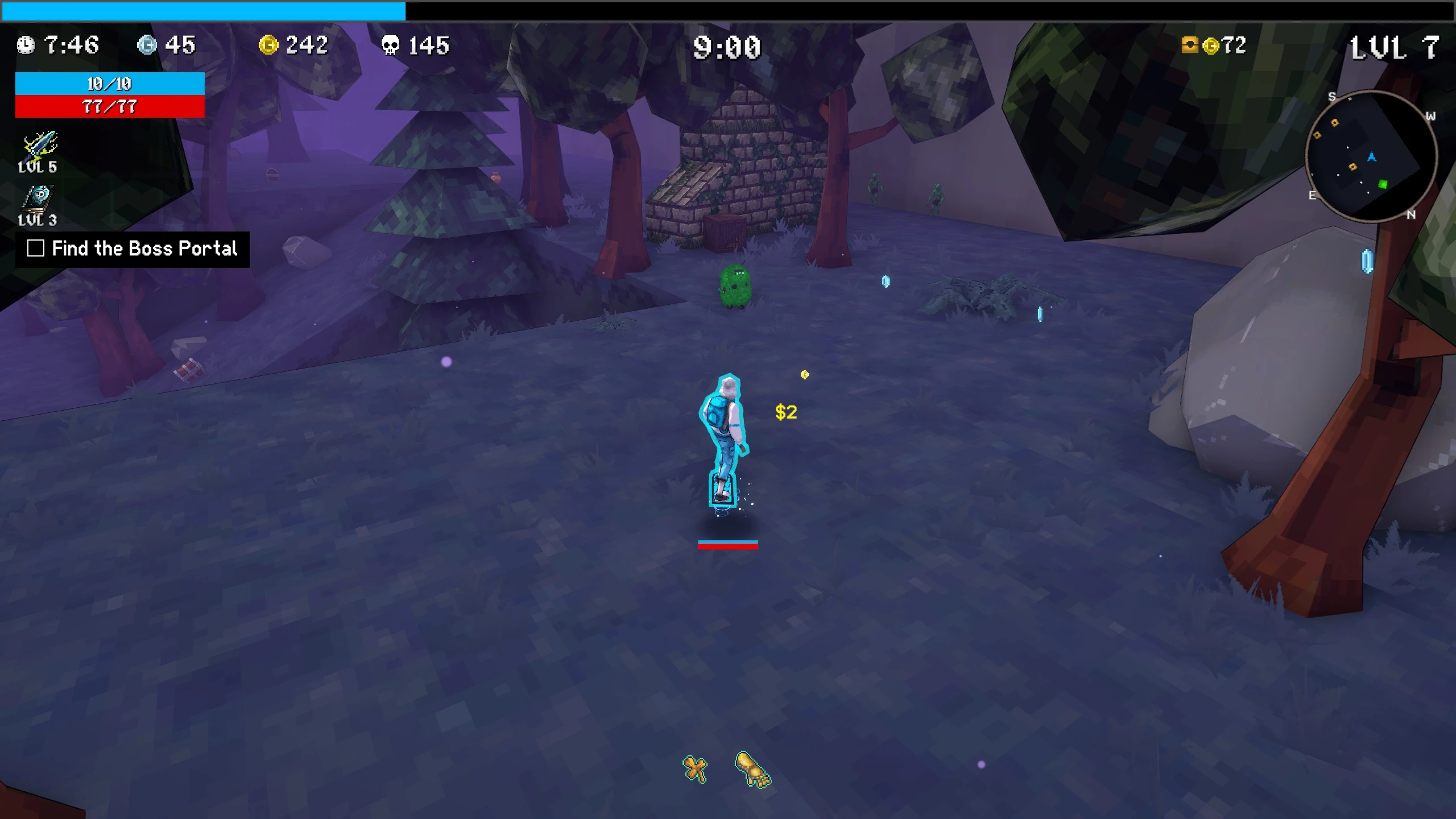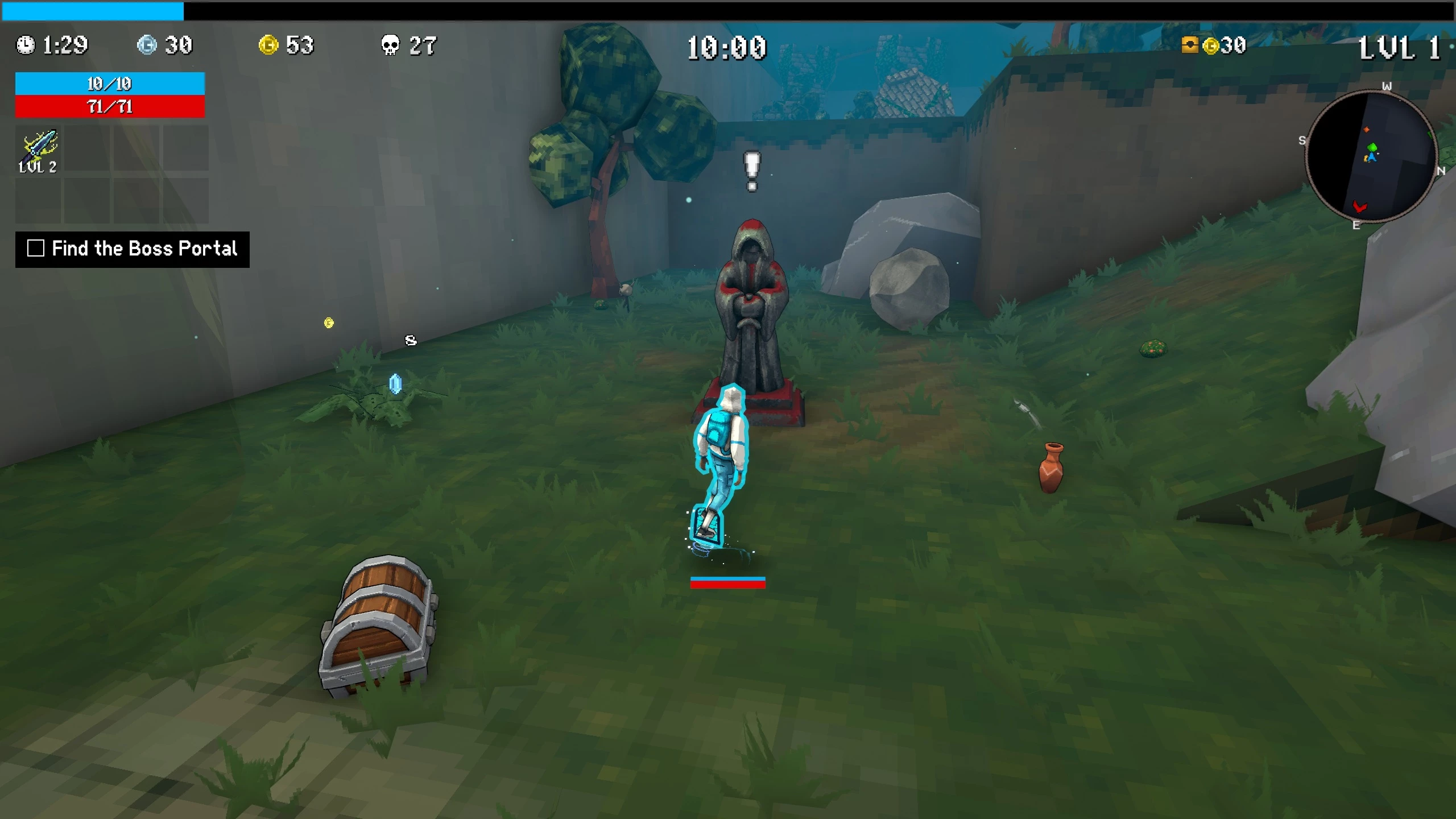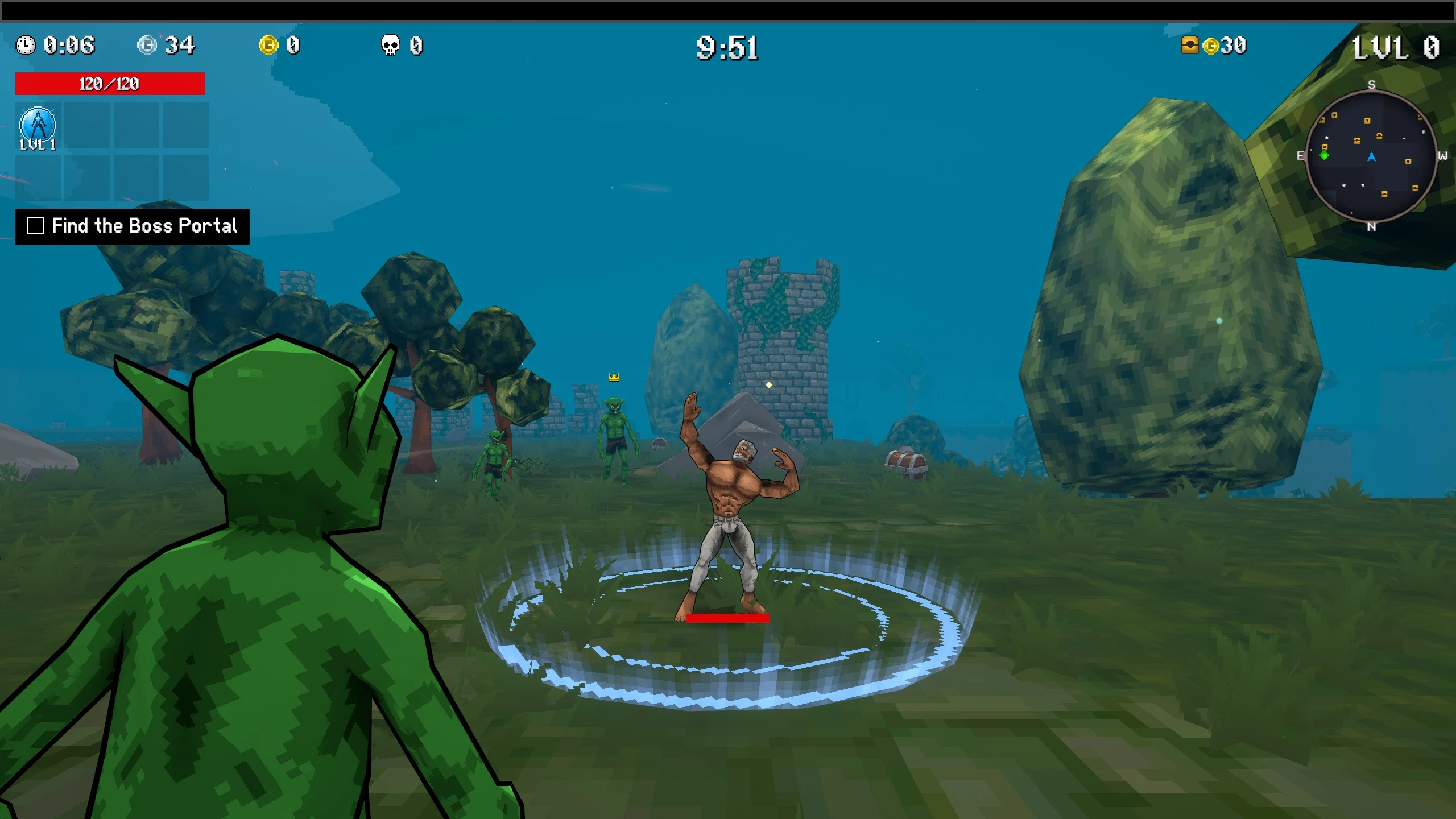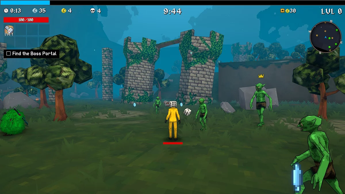 В конце каждого уровня есть портал с боссом, за исключением третьего. Потому что он телепортирует героя на гигантскую арену с финальным врагом. Кроме того, во время забега спавнятся мини-боссы. Это происходит после второй и седьмой минуты забега.