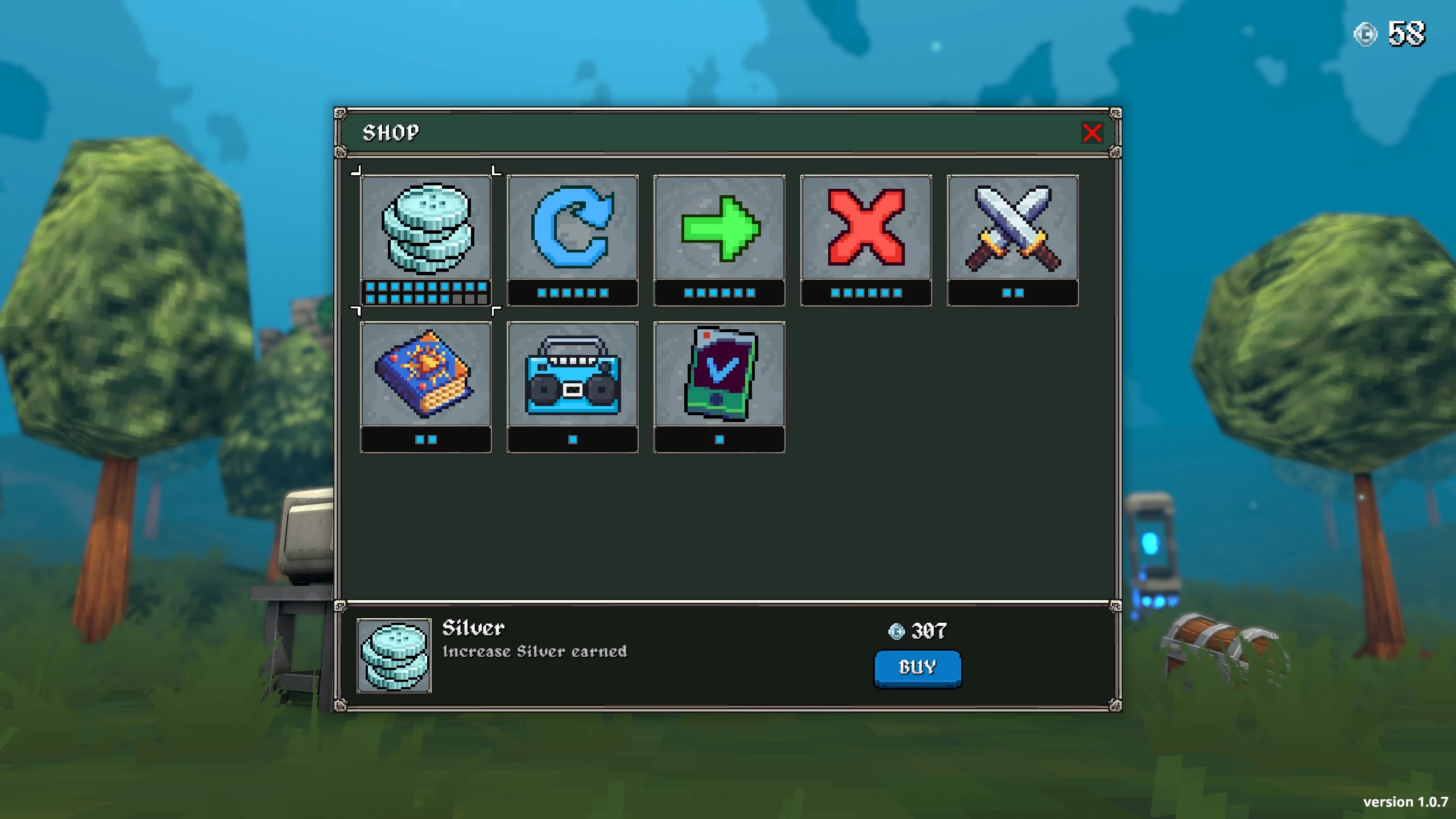 Магазин (Shop) — раздел в главном меню, где вы можете приобрести улучшения. Чтобы открыть магазин, нужно разблокировать пустыню и выполнить не менее 20-ти квестов. Однако есть нюанс: чтобы купить товары, необходимо выполнить ряд условий. В списке ниже подробно опишем ассортимент и требования для получения: