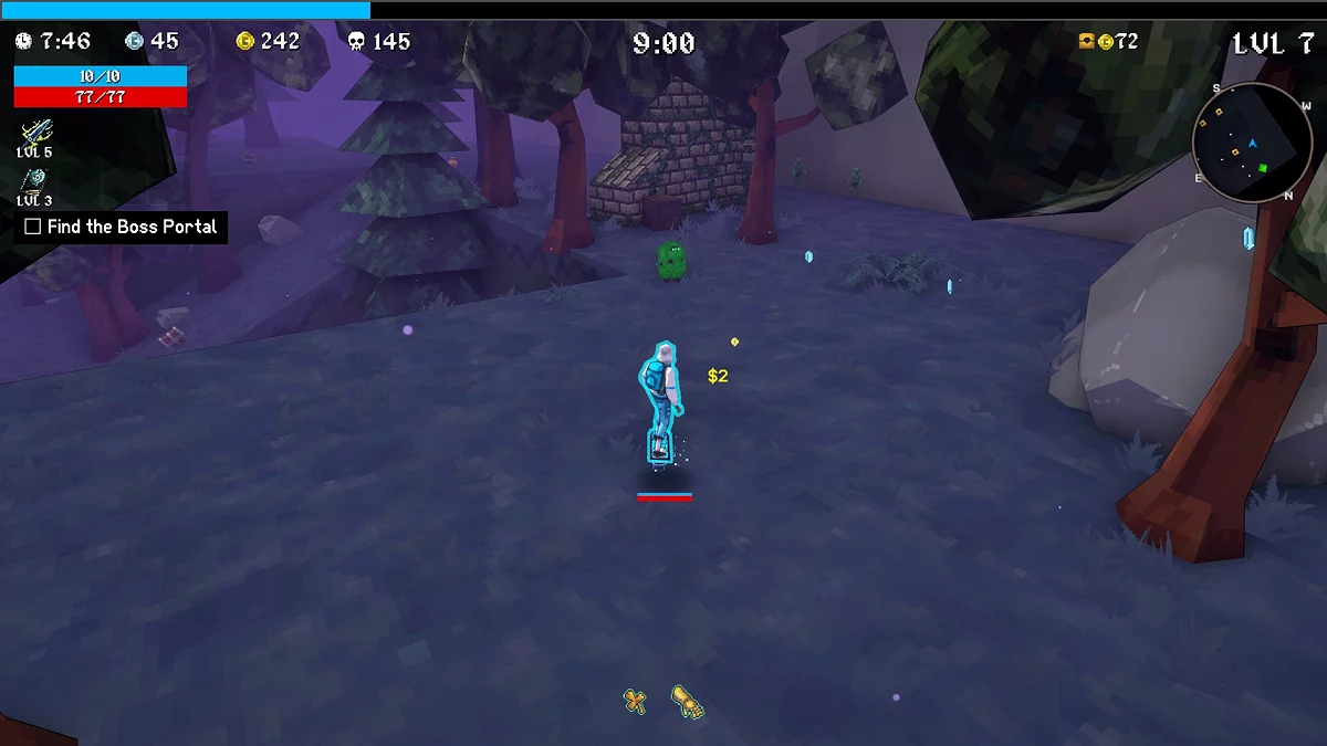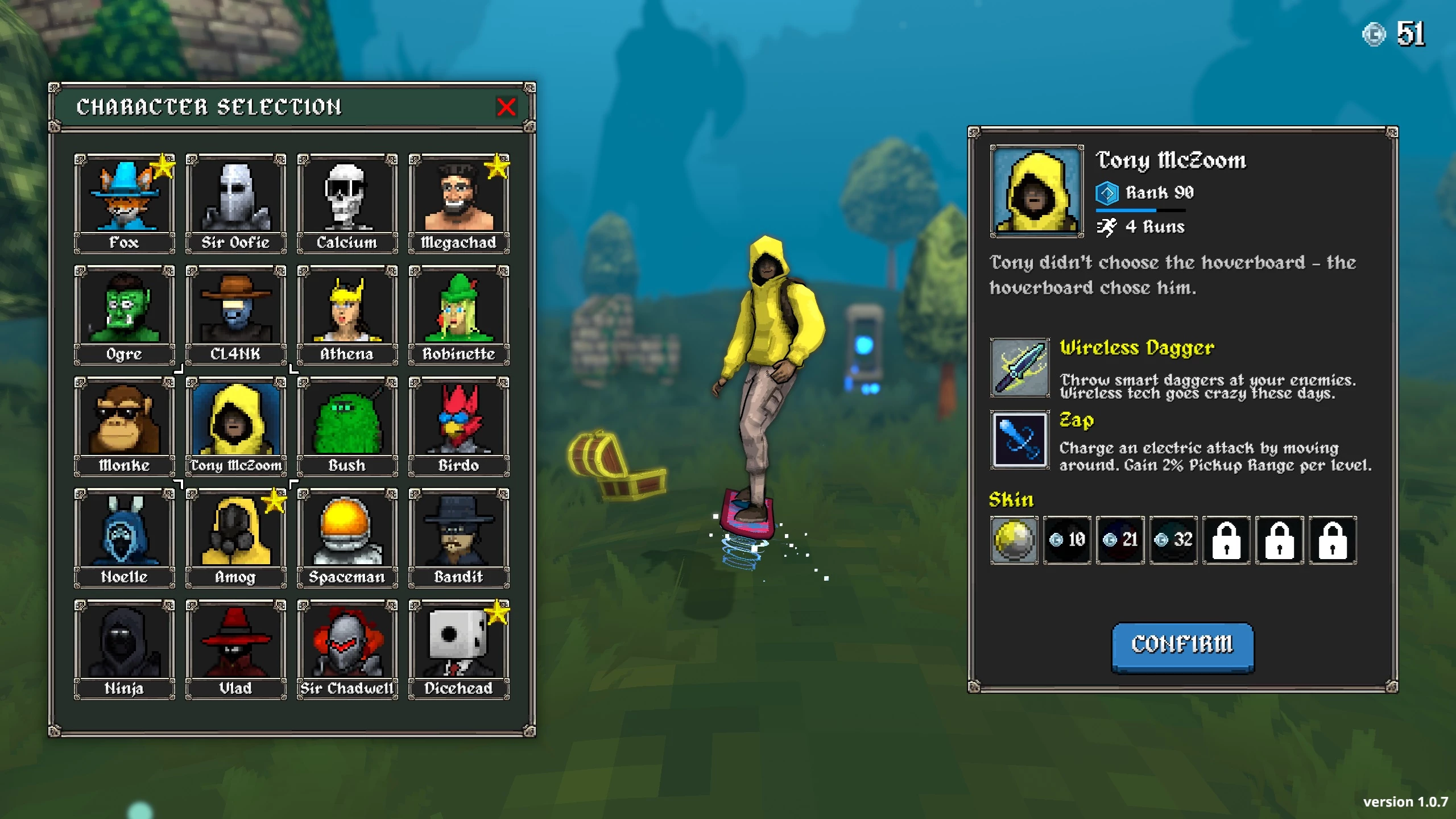 - Способность: +2% радиусу сбора за повышение уровня. При движении накапливается электрический заряд, который в конце высвобождается и поражает врагов.