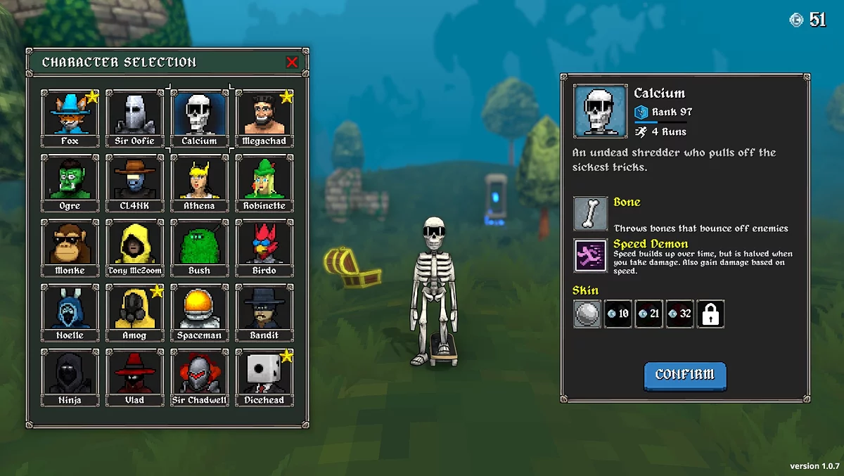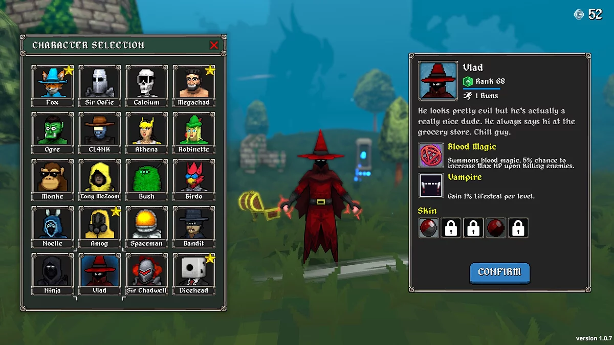 Первые два персонажа доступны с начала игры. Чтобы получить остальных, нужно выполнить определенное условие: купить за серебро в разделе «Разблокировки» (Unlock) оружие. О том, как это сделать, мы написали отдельную статью. Затем необходимо завершить задание, например: перебить 1 000 скелетов. Далее подробно опишем способы приобретения героев и их уникальные способности.