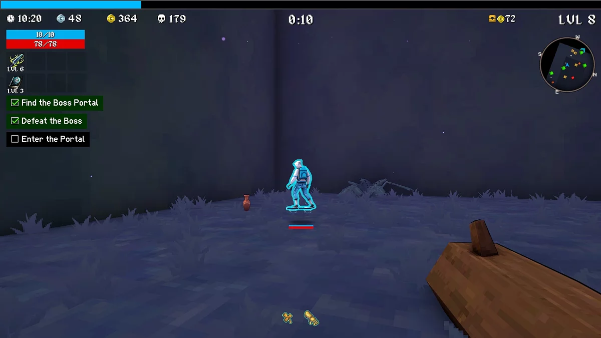 Опыт (XP) — маленькие голубые кристаллы, заполняющие полоску вверху экрана. В результате при повышении уровня появляется окно выбора рандомного набора фолиантов и оружия. Вы можете улучшить один из трёх вариантов.
