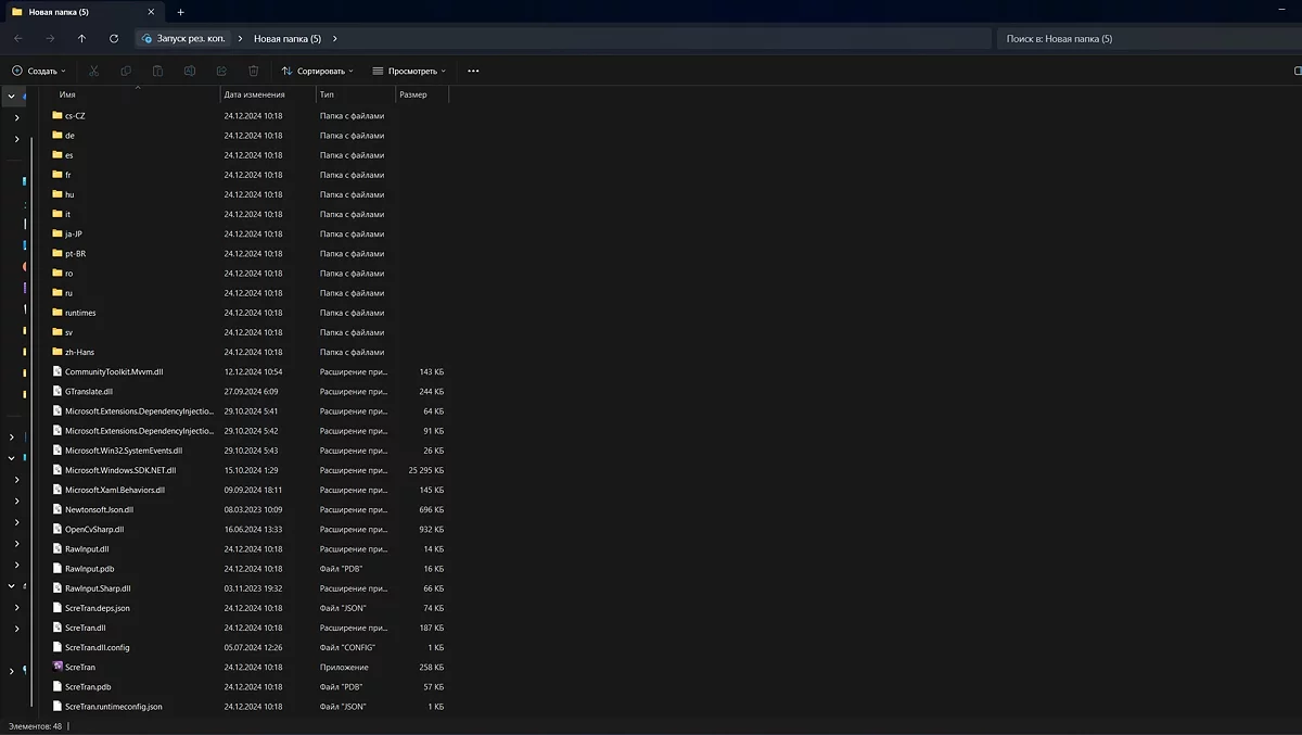 - Откройте папку с переводчиком и запустите его с помощью файла ScreTran.exe.