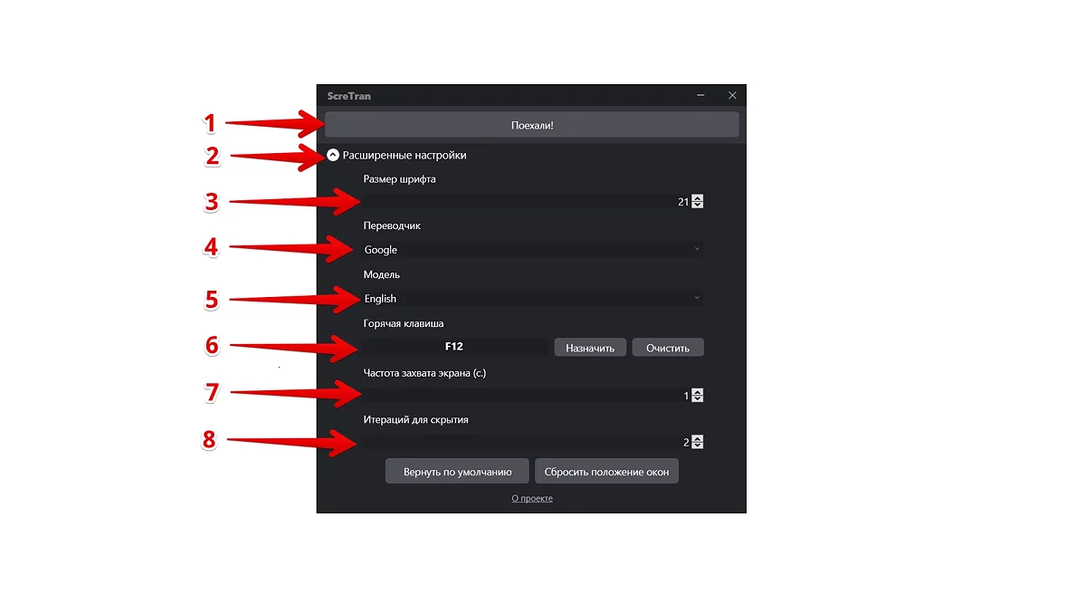 Далее кратко опишем функционал всех настроек экранного переводчика.