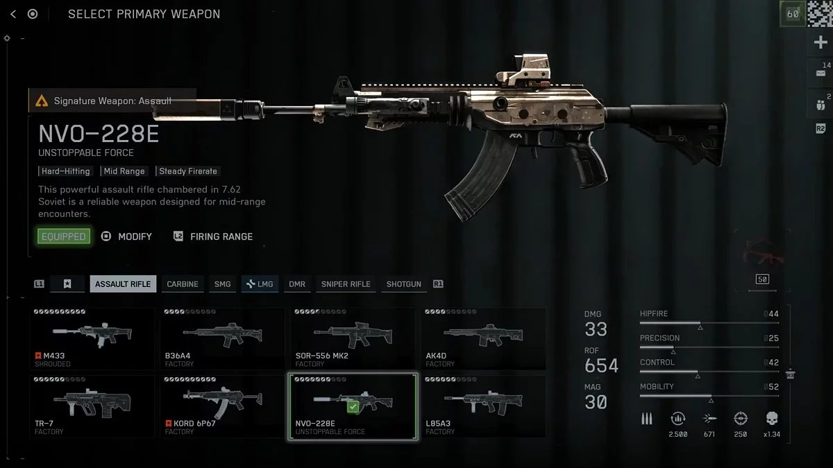 NVO-228E — штурмовая винтовка считается одной из лучших в игре. У неё высокая скорострельность и высокая точность при стрельбе от бедра. Её характеристики позволяют вести как подавляющий, так и поддерживающий огонь по целям. Наиболее эффективно автомат проявляет себя в городских условиях на узких улицах.