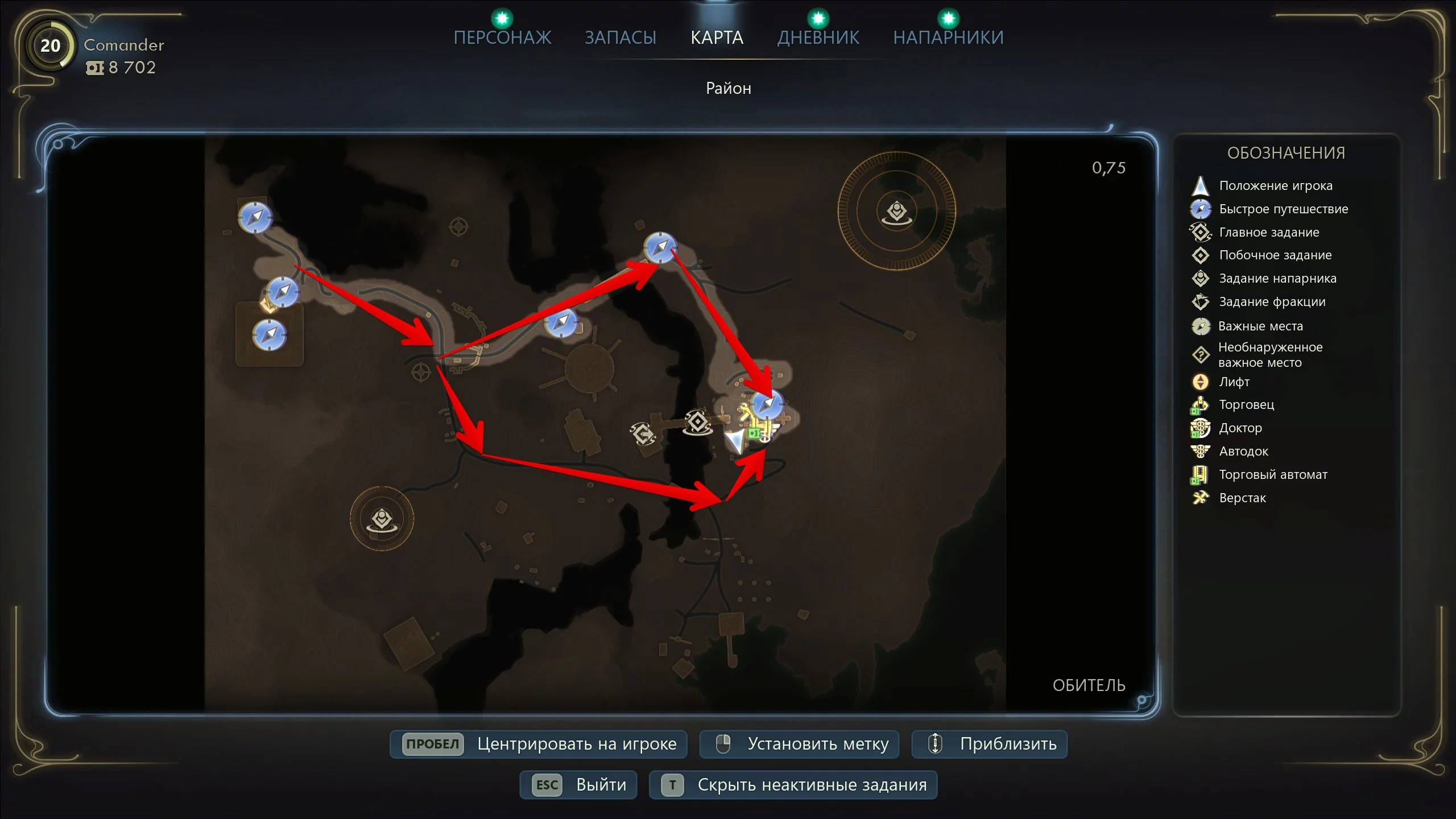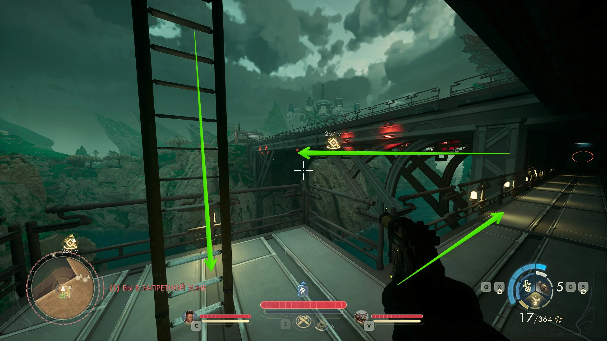 - Северная дорога: Длинный, но относительно безопасный путь. Основная сложность — мост с арахнидами и пары зирания.